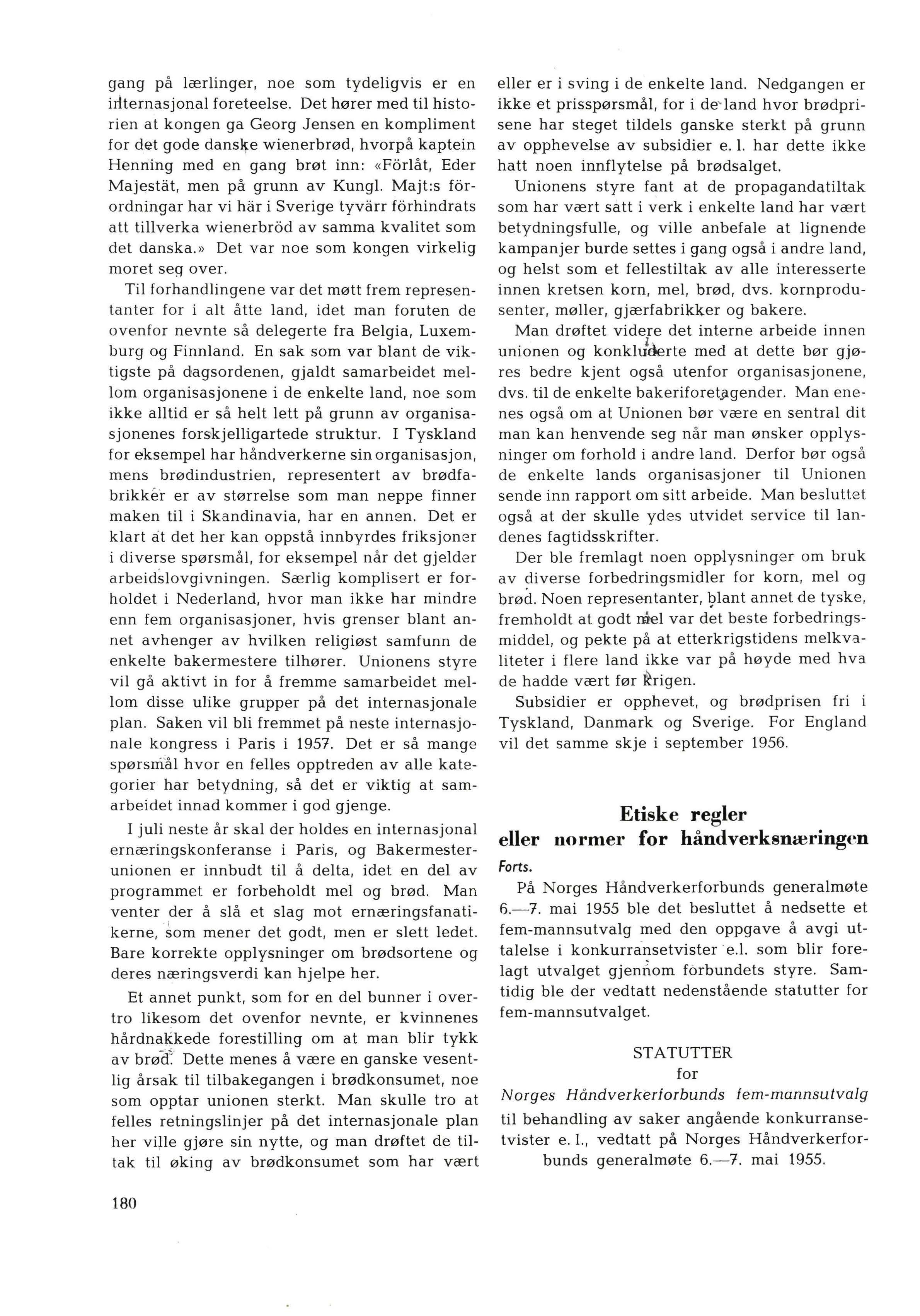 ble holdt i Stockholm den 23. og 24. mai. Før møtene fikk en delegasjon på fem mann audiens hos kong Gustav Adolf, noe som har gitt gj e nklang i flere av de europeiske fagtidsskrifter. De utvalgte var Laserre (Frankrike), Lang (VestTyskland). Mitchell (England), samt de for oss vel kjente Georg Jensen, Danmark , og Sveriges Alfred Hennring Sistnevnte overrakte kongen et eksemplar av professor Åke Campbells bok «Det svenska brødet ». Audiensen var preget av en hjertelig tone , heter det, og noe som gjorde inntrykk på de utenlandske gjester var at Kongen underholdt seg like godt med gjestene på tysk, engelsk eller fransk. Det var hr. Laserre som orienterte kongen om den internasjonale unions mål og hensikt, og Hans Majestet intersserte seg særlig sterkt for slike ting som årsakene til tilbakegangen i brødkonsumet, og den knappe til-