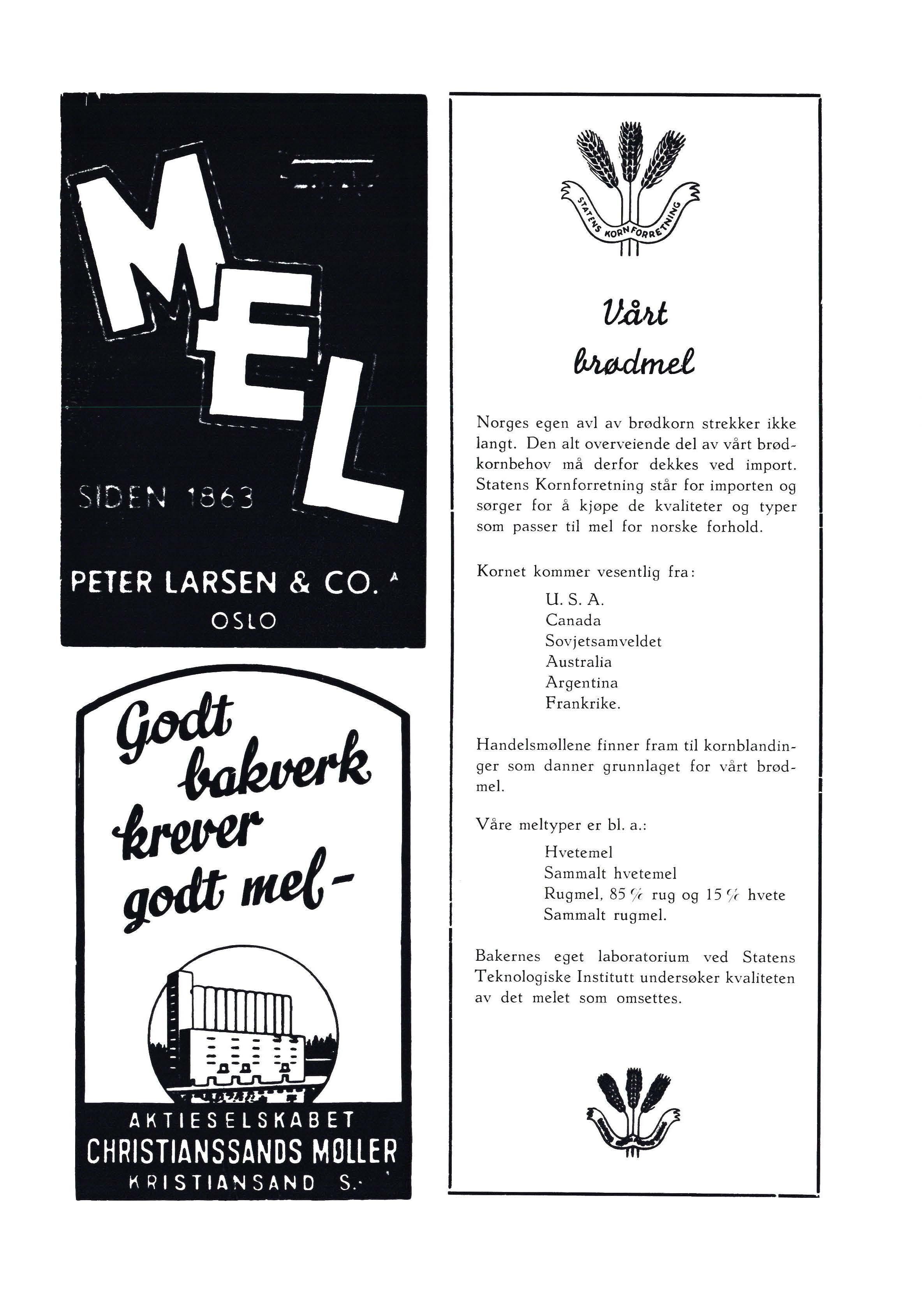 Norges egen avl av brødkorn strekker ikke langt. Den alt overveiende del av vårt brødkornbehov må derfor dekkes ved import. Statens Kornforretning står for importen og sørger for å kjøpe de kvaliteter og typer som passer til mel for norske forhold.