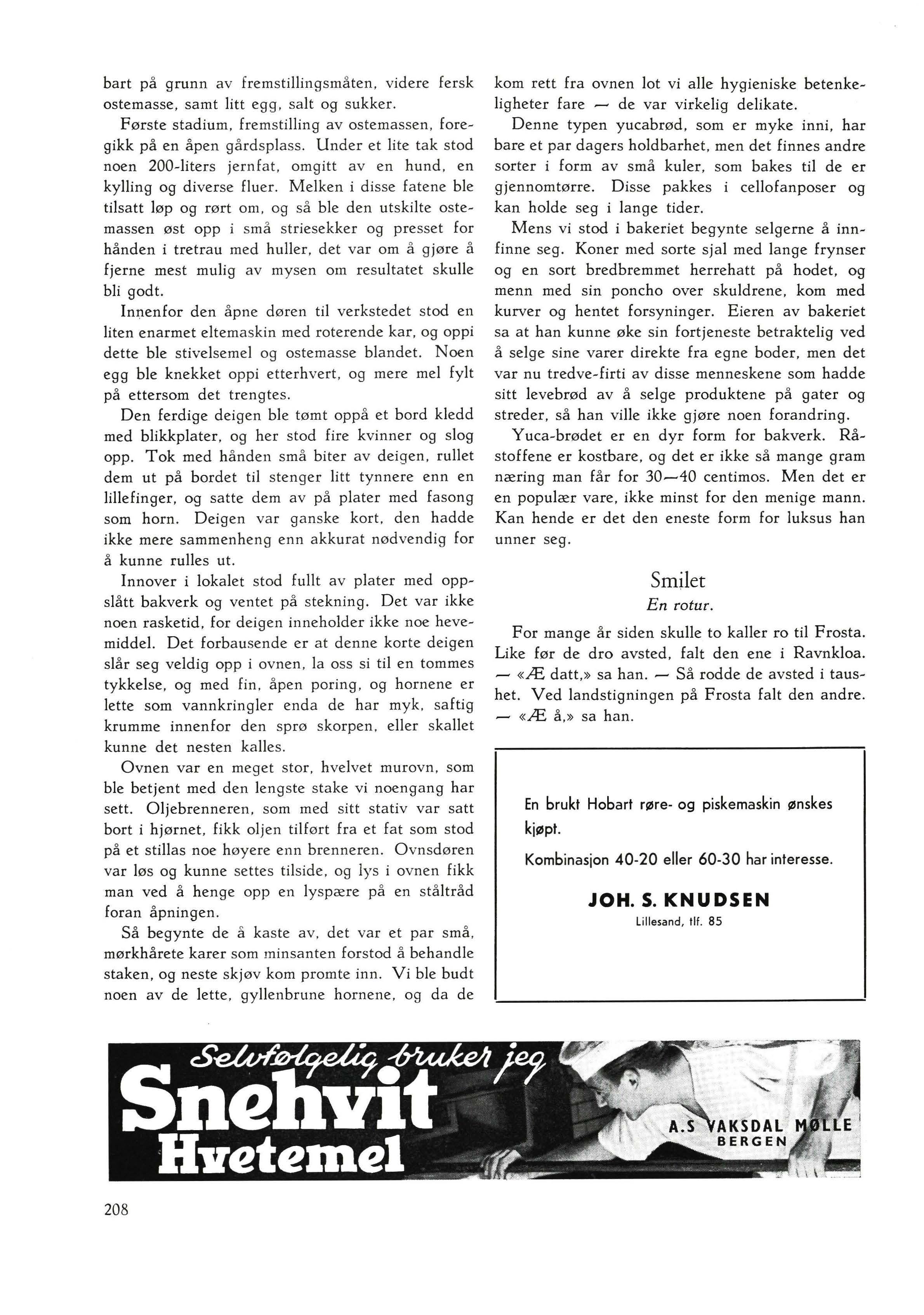 Den ferdige deigen ble tømt opp å et bord kledd med blikkplater, og her stod fire kvinner og slog opp. Tok med hånden sm å biter av deigen , rullet dem ut på bordet til stenger litt tynnere enn en lillefinger, og satte dem av på plater med fasong som horn . Deigen var gan s ke kort , den hadde ikke mere sammenheng enn akkurat nød v endig for å kunne rulles ut.