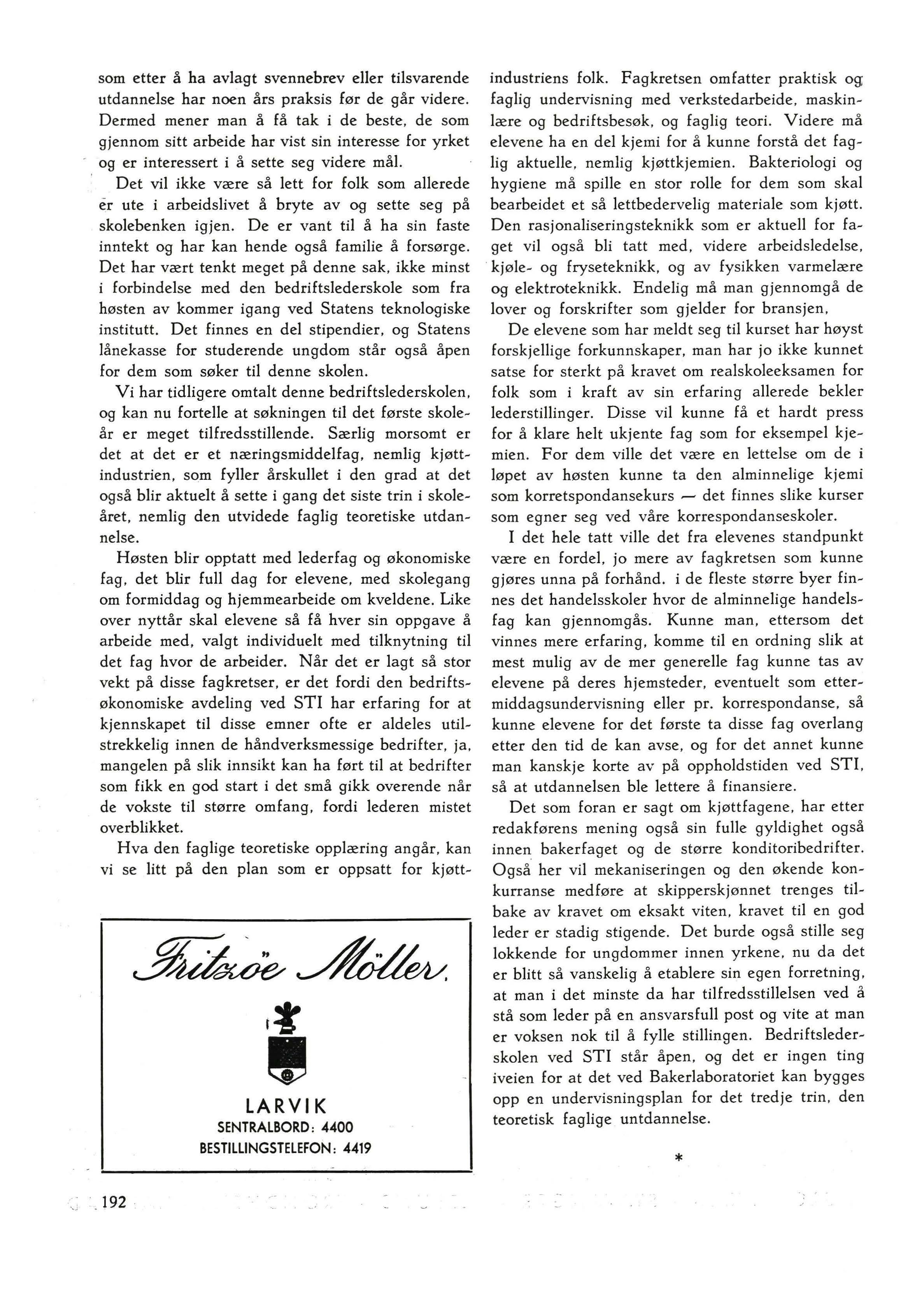 Men det er nettopp i dette mellomrom vi finner en betydelig del av det lederpersonale som det er bruk for i næringsmiddelbedriftene, produksjonsledere og fabrikkmestre, og vi skulle tro, ikke så få håndverksmessig utdannede selvstendige næringsdrivende.
