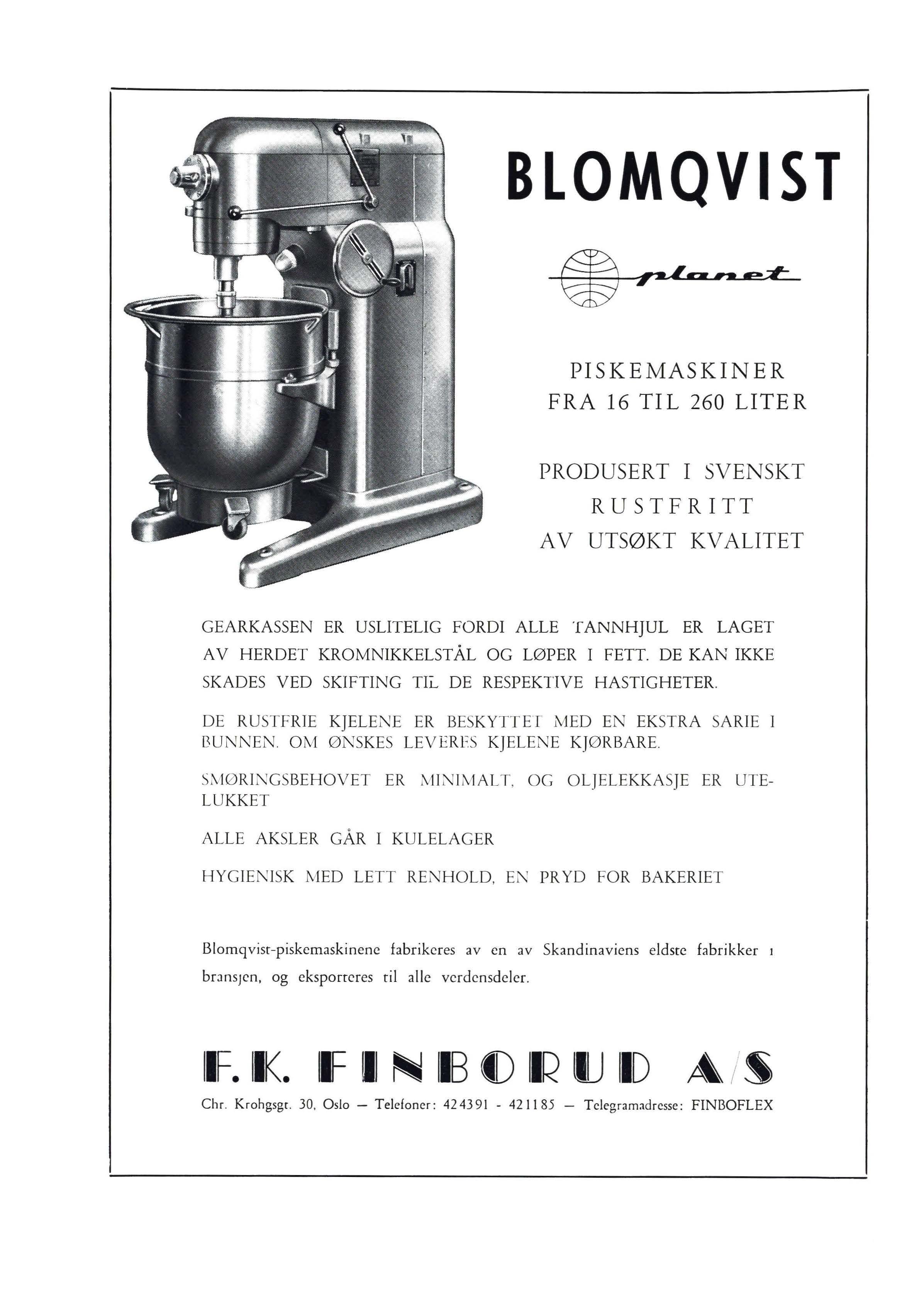 Chr. Krohgsgr. 30, Oslo - Telefoner: 42 43 91 - 4211 85 - Telegramadresse: FINBOFLEX