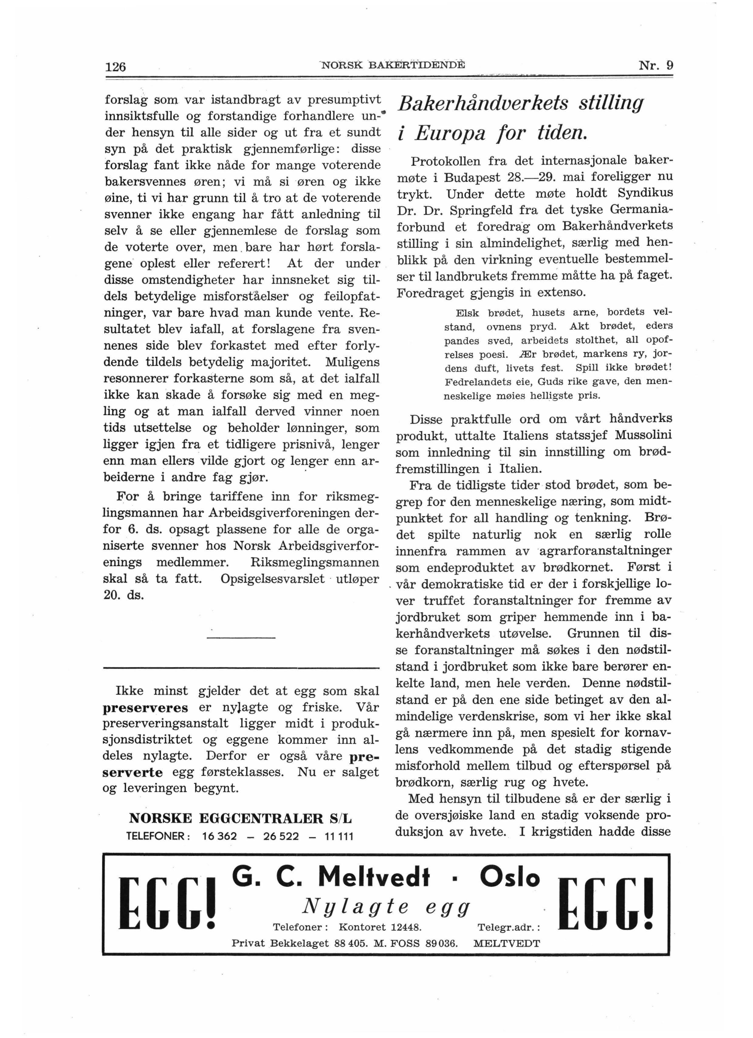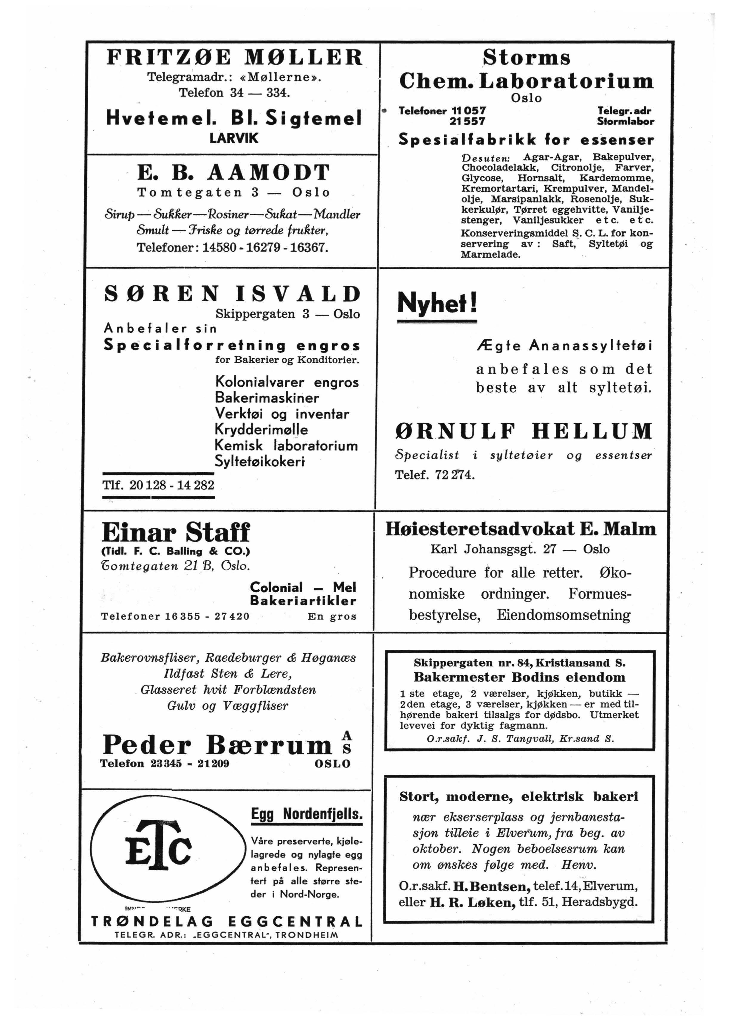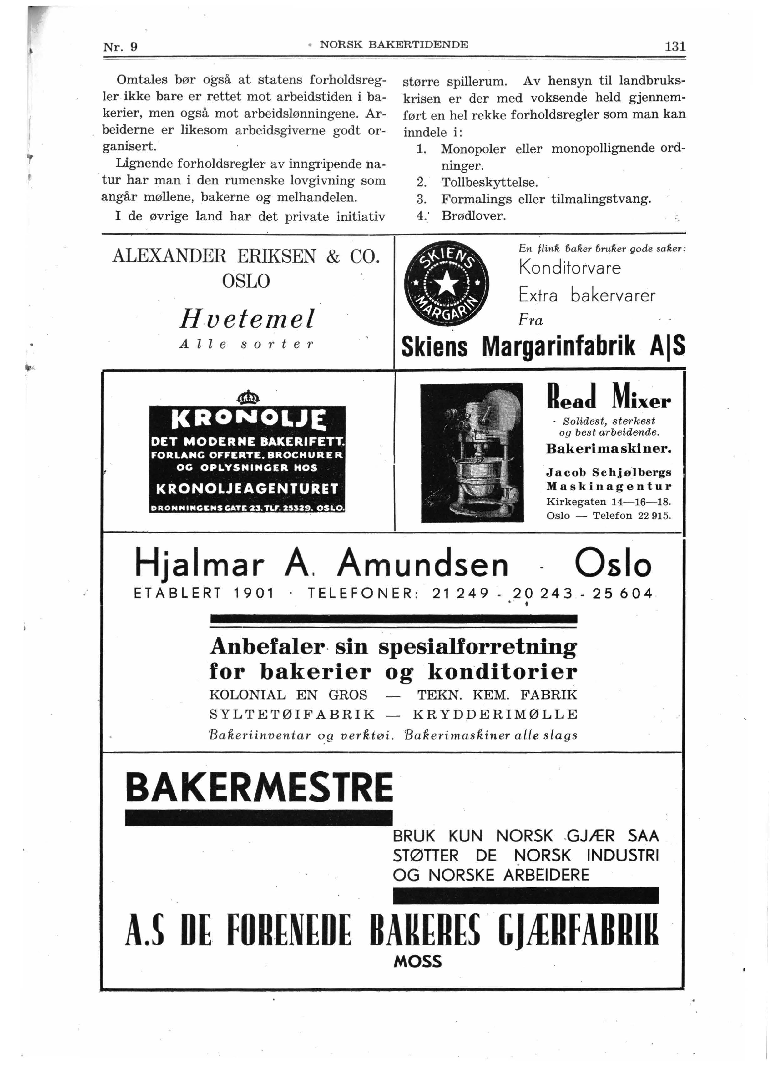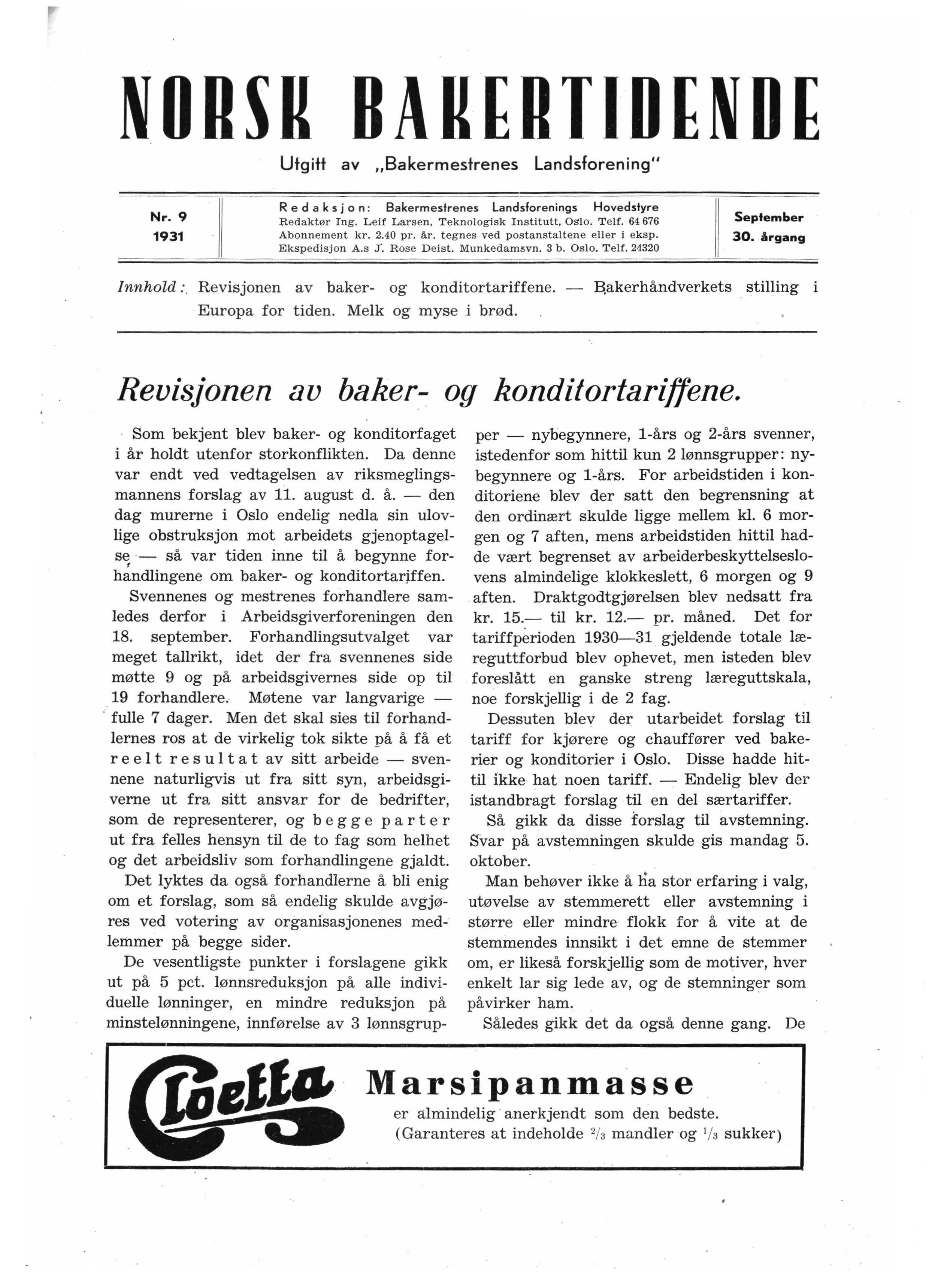 R e d a k s j o n: Bakermestrenes Landsforenings Hovedstyre Redaktør Ing. Leif Lar sen, T eknologisk Institutt, Oslo T e lf 64 676 Abonnement kr. 2.40 pr. år. te gnes ved postanstaltene e ll er i e ksp. Ekspedisjon A .s J'. Ros e D eis t. Munkedam5vn. 3 b. Oslo. T e lf 24320 September 30. årgang