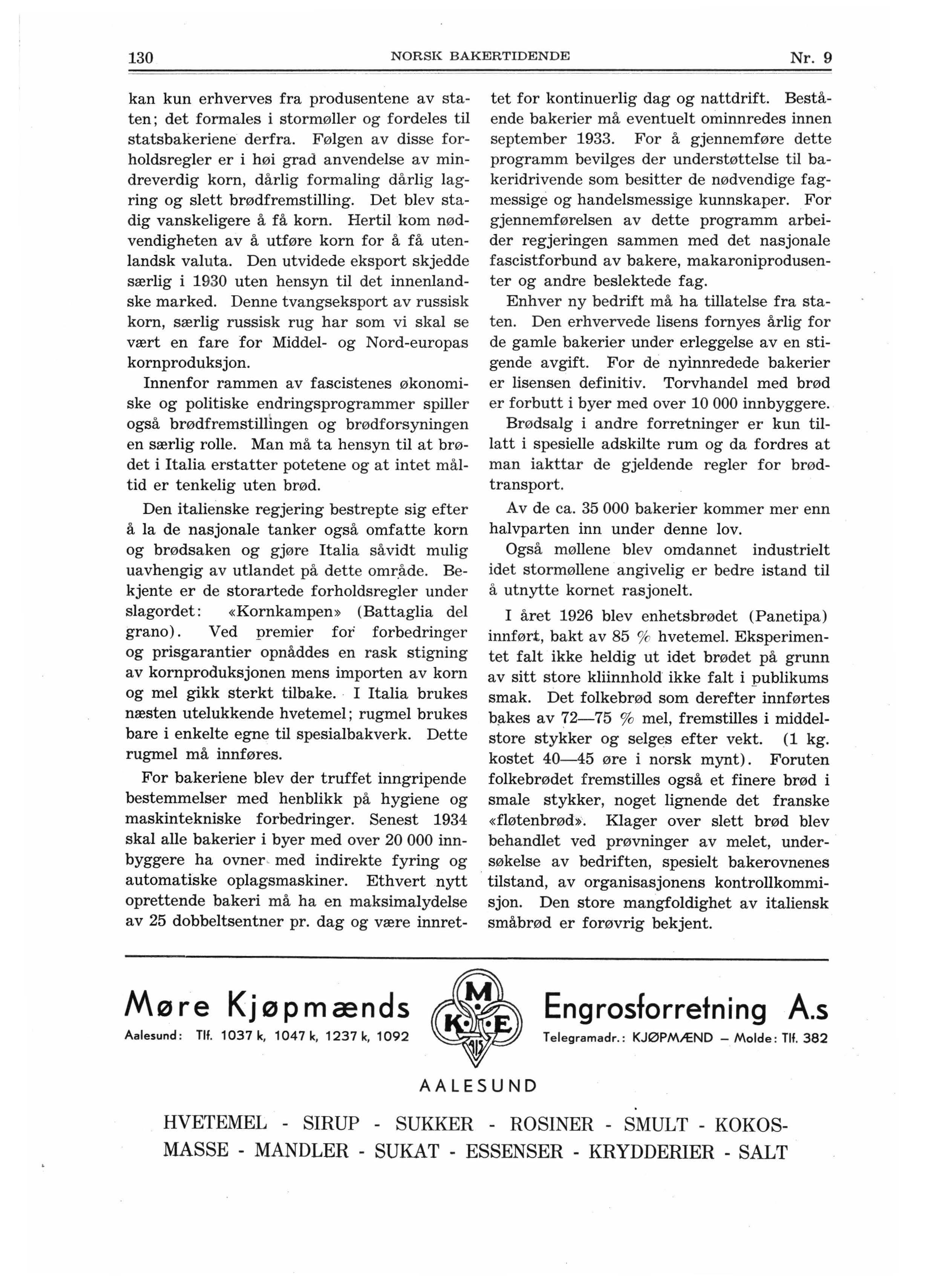 Den italienske regjering bestrepte sig efter å la de nasjonale tanker også omfatte korn og brødsaken og gjøre Italia såvidt mulig uavhengig av utlandet på dette omr åde. Bekjente er de storartede forholdsregler under slagordet: «Kornkampen » (Battaglia del grano) V ed premier for forbedringer og prisgarantier opnåddes en rask stigning av kornproduksjonen mens importen av korn og mel gikk sterkt tilbake. . I Italia brukes næsten utelukkende hvetemel; rugmel brukes bare i enkelte egne til spesialbakverk. Dette rugmel må innføres.