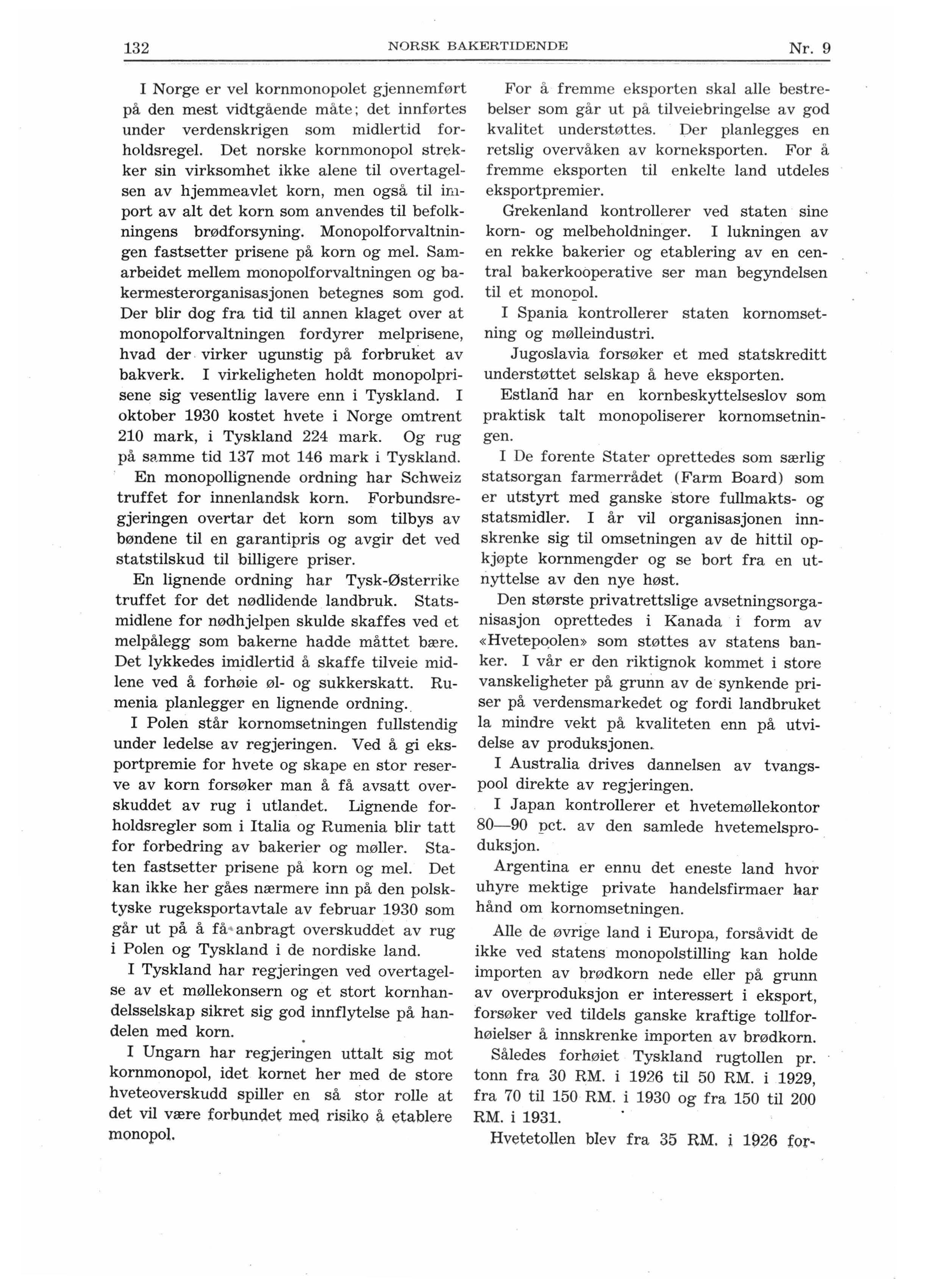 I De forente stater er melforbruket sogar 12-15 % mindre enn før. I Wien har man fastslått et daglig mindreforbruk pr. hode av 30 gr. fra 1925 til 1930. I Tyskland har man en lignende tilbakegang ikke minst på grunn av den store arbeidsløshet og den gode potethøst. De voksende uomsatte forråd av rug og hvete blev i slutten av høstningsåret 1929/ 30 ansatt til 11 a 12 millioner tons, motsvarende en ukes forbruk.
