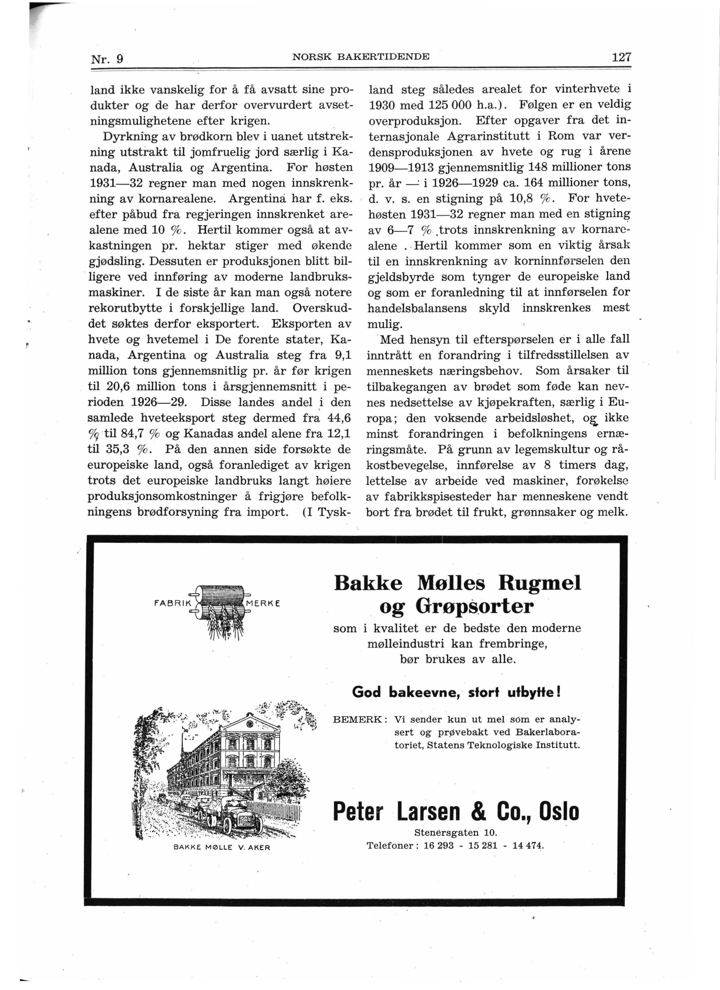 BEMERK : Vi sender kun ut mel som er analysert og prøvebakt ved Bakerlaboratoriet, Statens Teknologiske Institutt. Peter Larsen & Co., Oslo