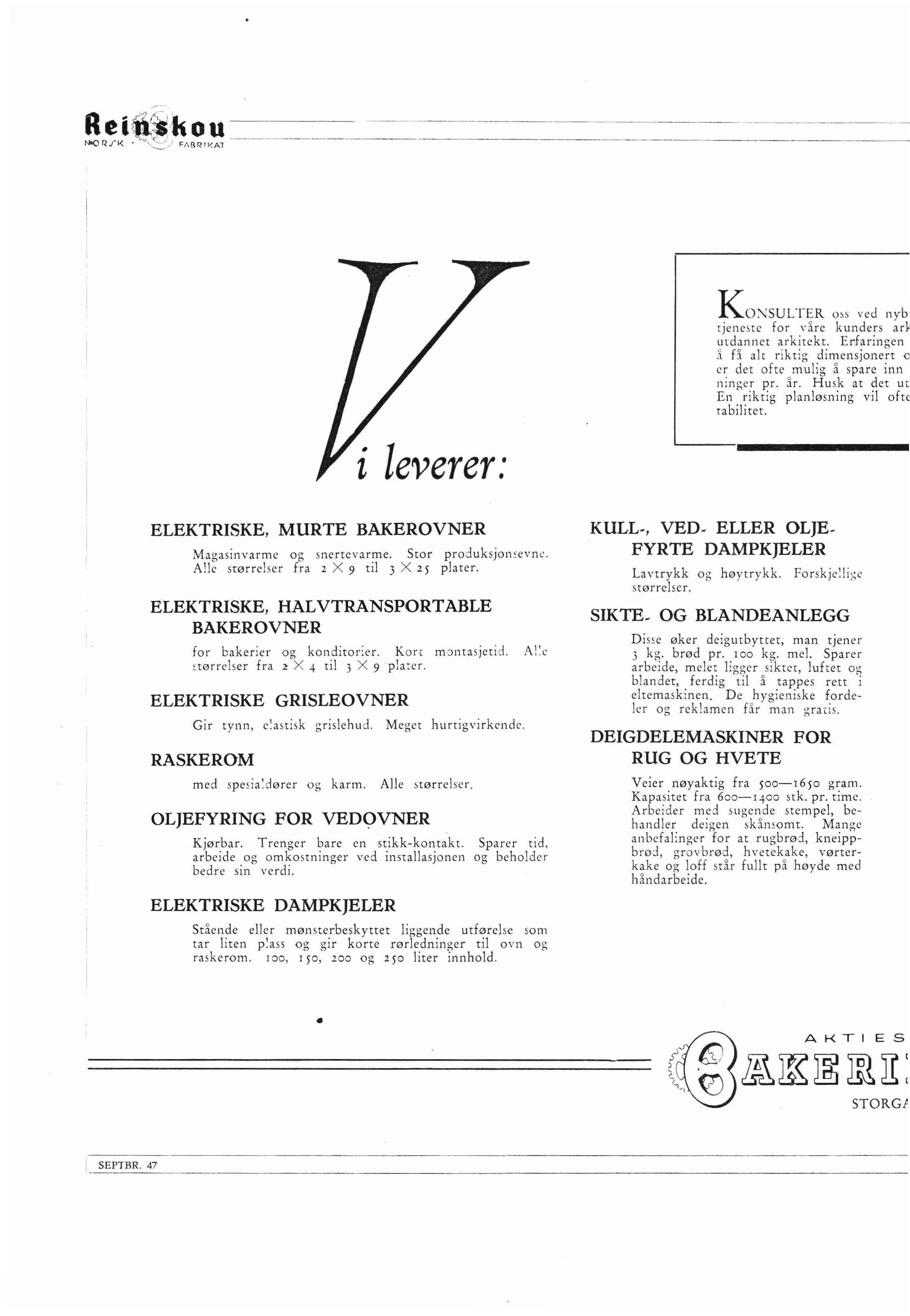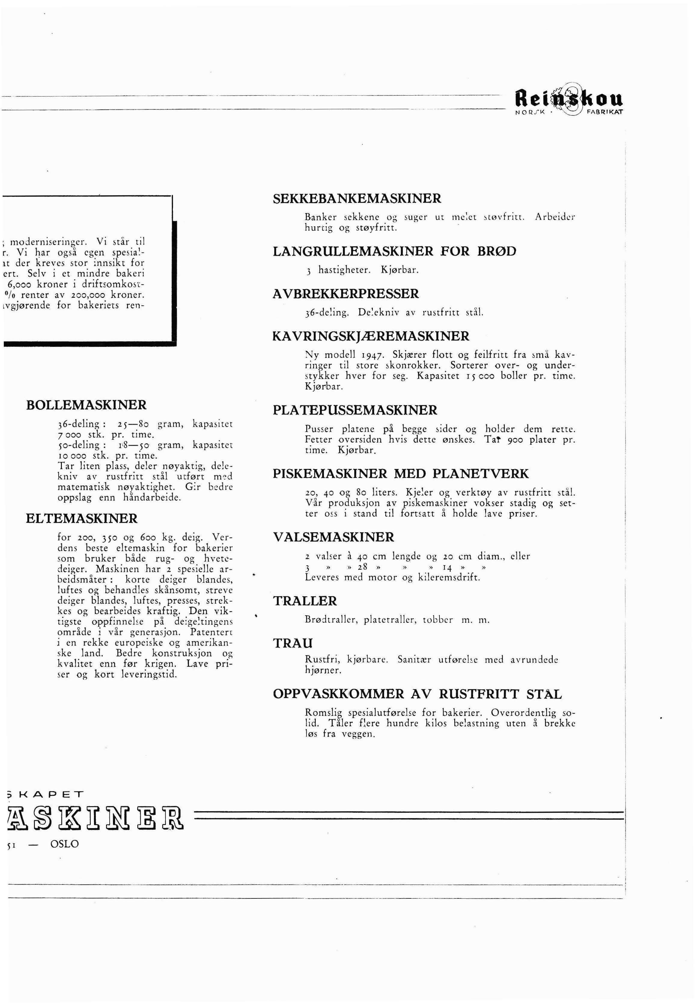 Alle slags bakeri og konditorimaskiner fra de ledende fabrikker. - Kalor Oljefyringsanlegg. Baker og Konditorovner.