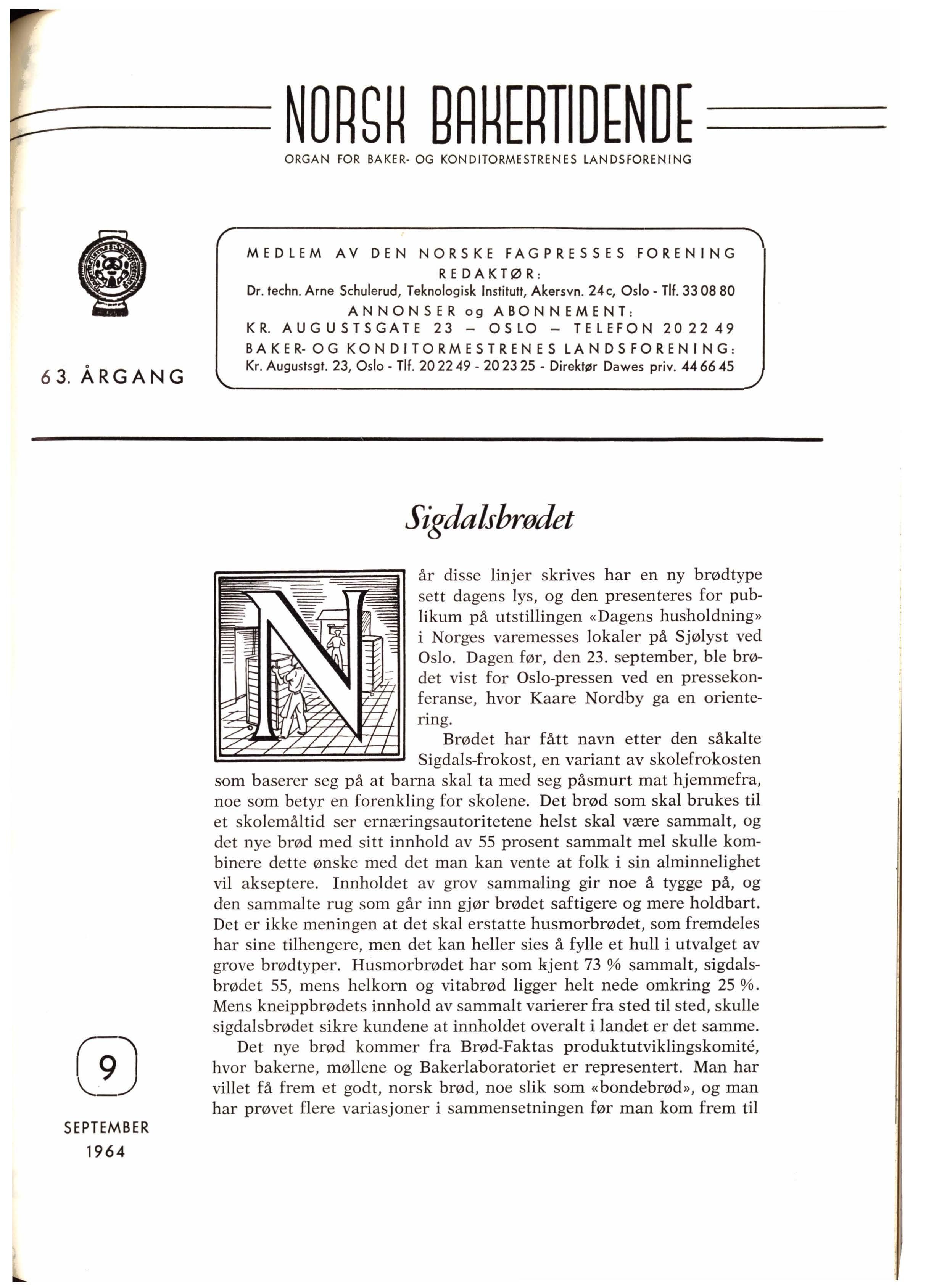 år disse linjer skrives har en ny brødtype sett dagens lys, og den presenteres for publikum på utstillingen «Dagens husholdning» i Norges varemesses lokaler på Sjølyst ved Oslo. Dagen før, den 23. september, ble brødet vist for Oslo-pressen ved en pressekonferanse, hvor Kaare Nordby ga en orientering.