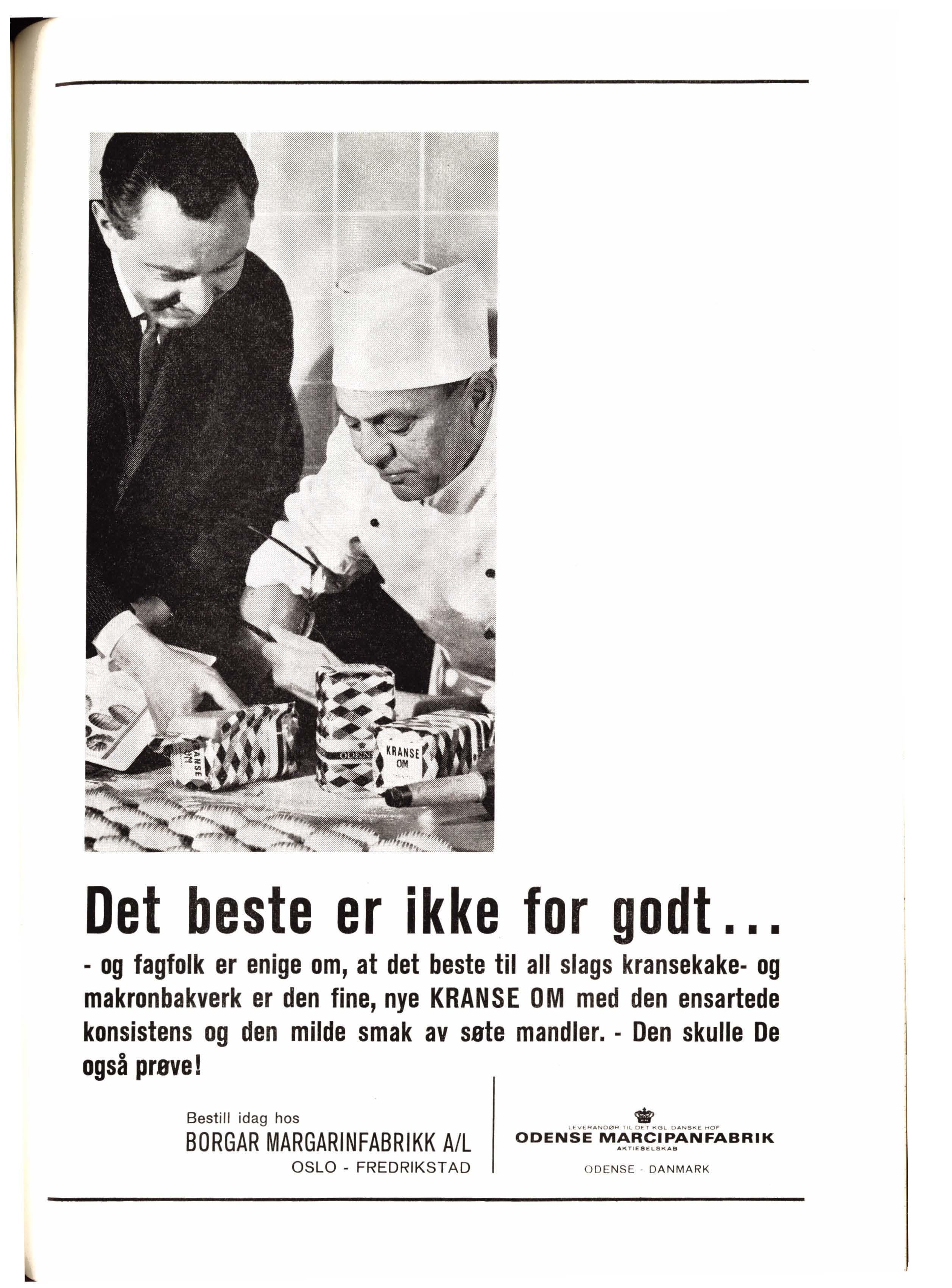 - og fagfolk er en i ge om, at det beste til all slags kransekake- og makronbakve rk er den fine, nye KRANSE OM med den ensartede konsistens og den milde smak av søte mandler. - Den skulle De også prøve!