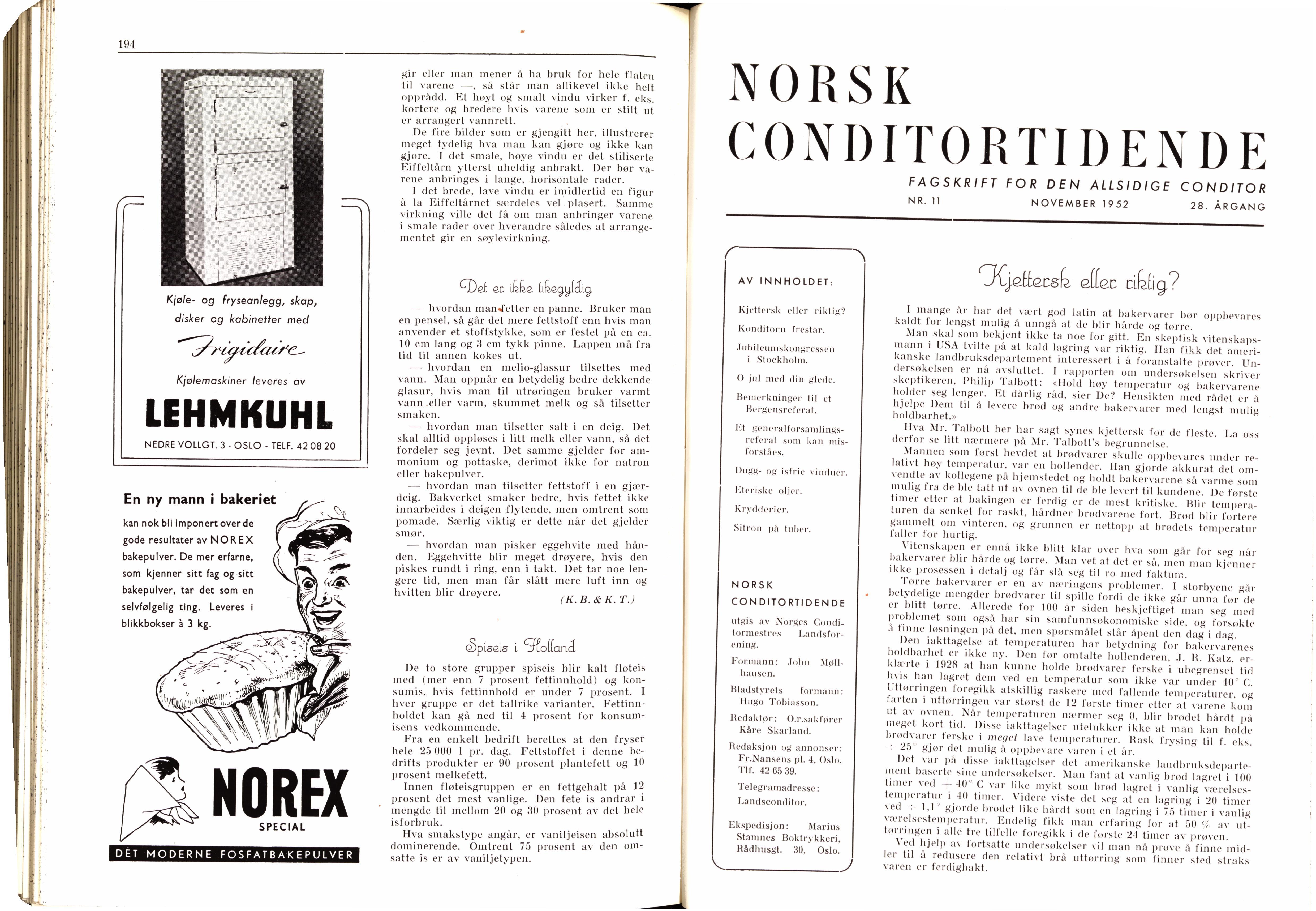 kan nok bli imponert over de gode resultater av NOREX bakepulver. De mer erfarne, som kjenner sitt fag og sitt bakepulver, tar det som en selvfolgelig ting. Leveres i blikkbokser ir 3 kg.