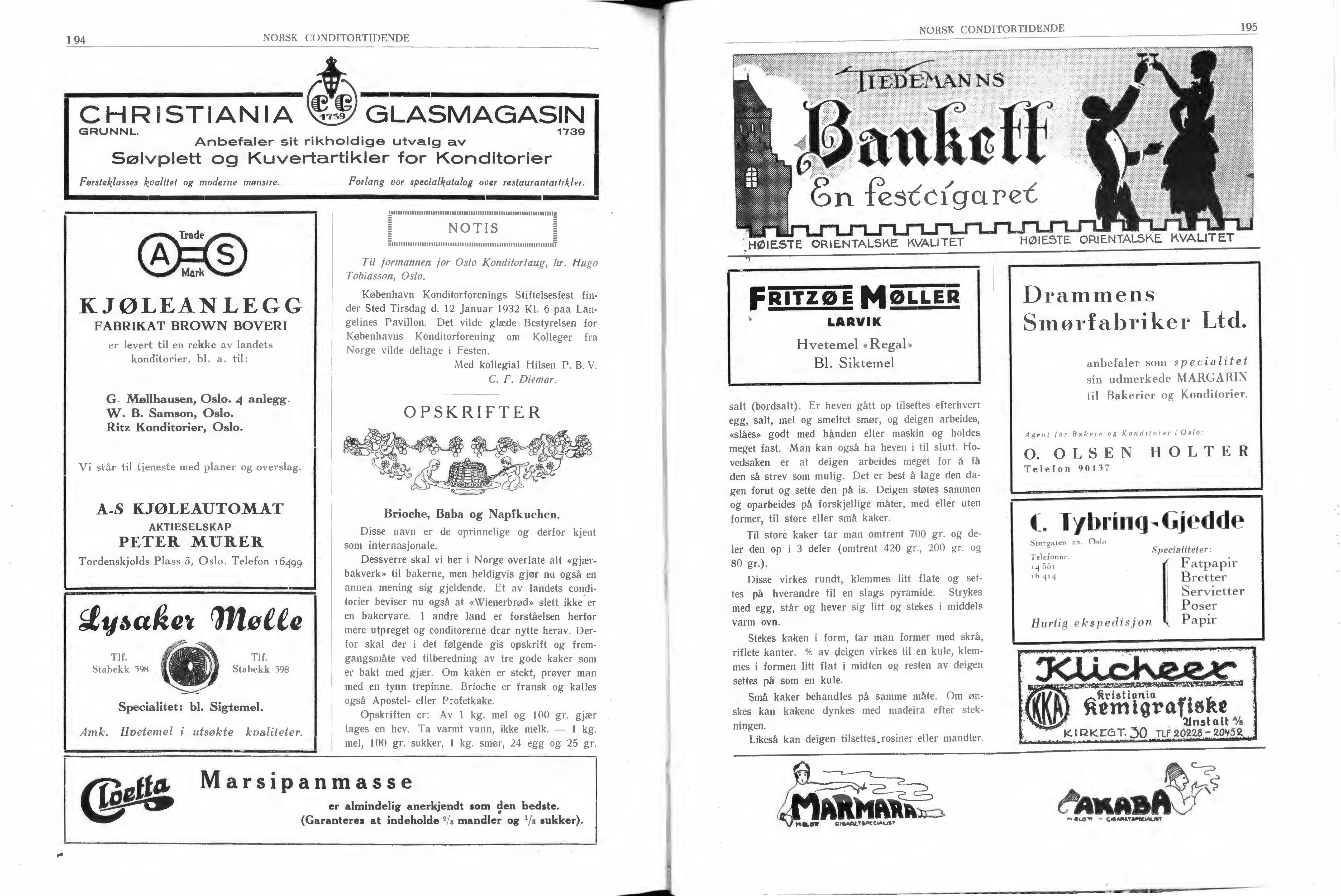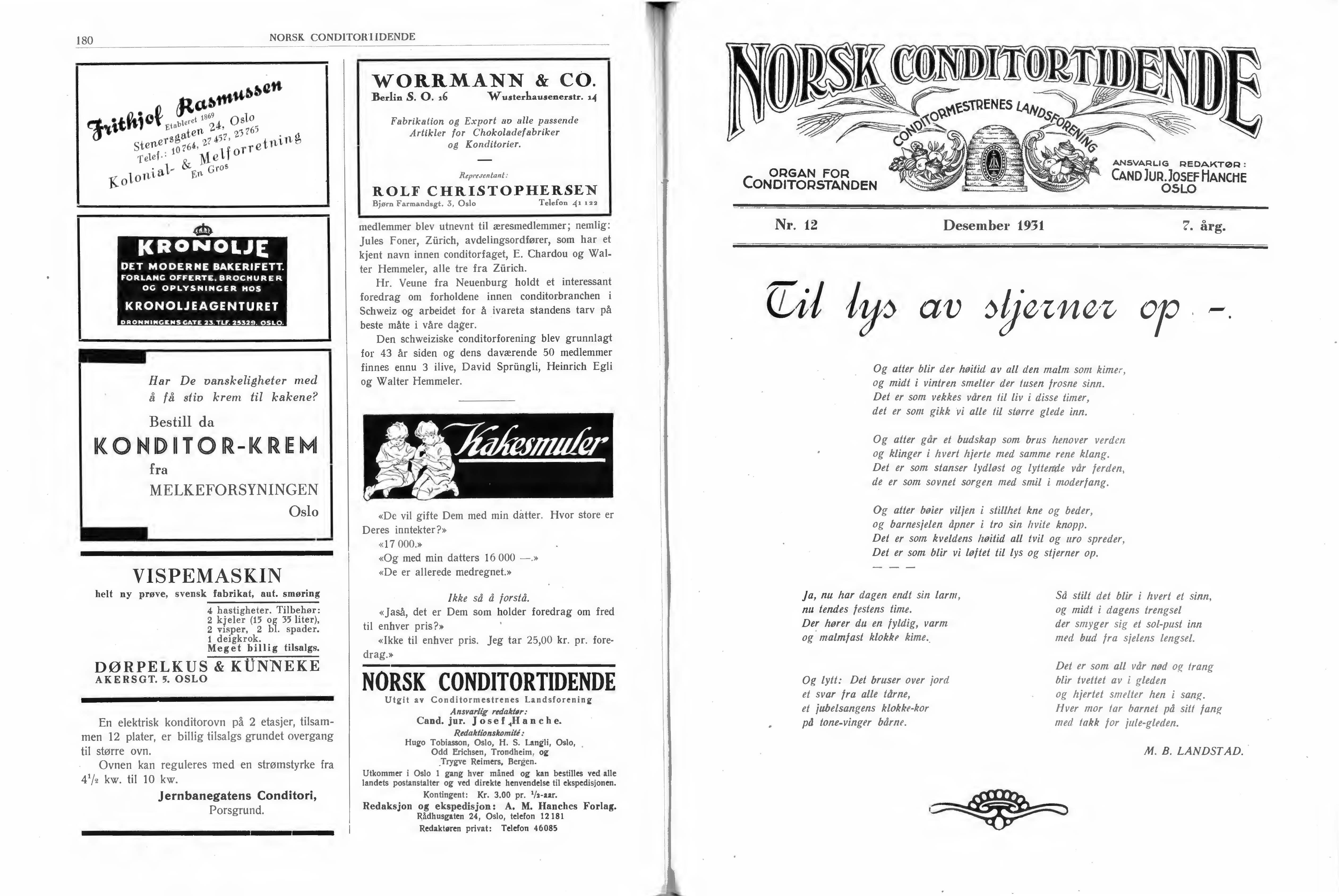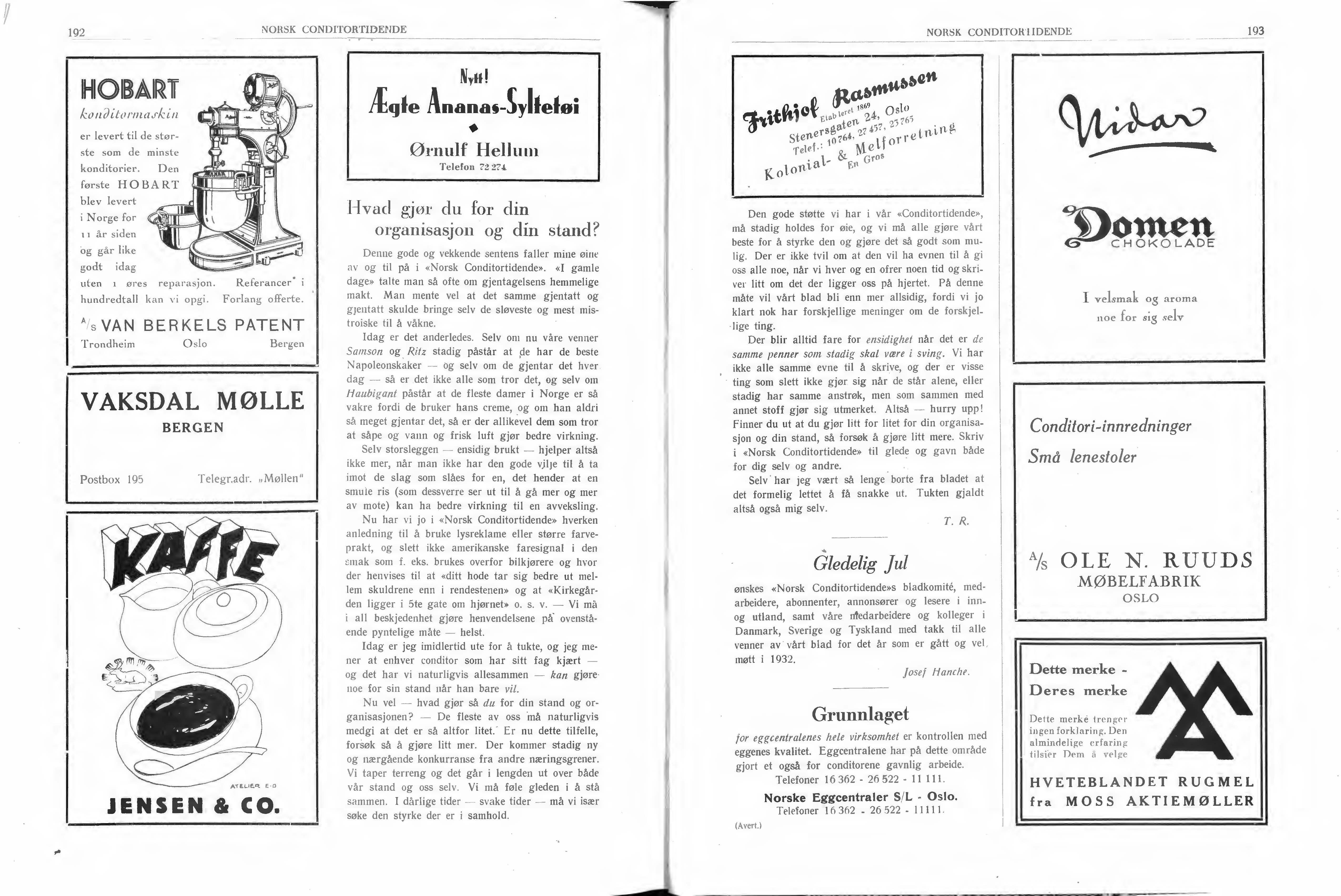 ønskes «Norsk Conditortidende»s bladkomite, medarbeidere, abonnenter, annonsører og lesere i innog utland, samt våre ntedarbeidere og kolleger i Danmark, Sverige og Tyskland med takk til alle venner av · vårt blad for det år som er gått og vel , møtt i 1932.