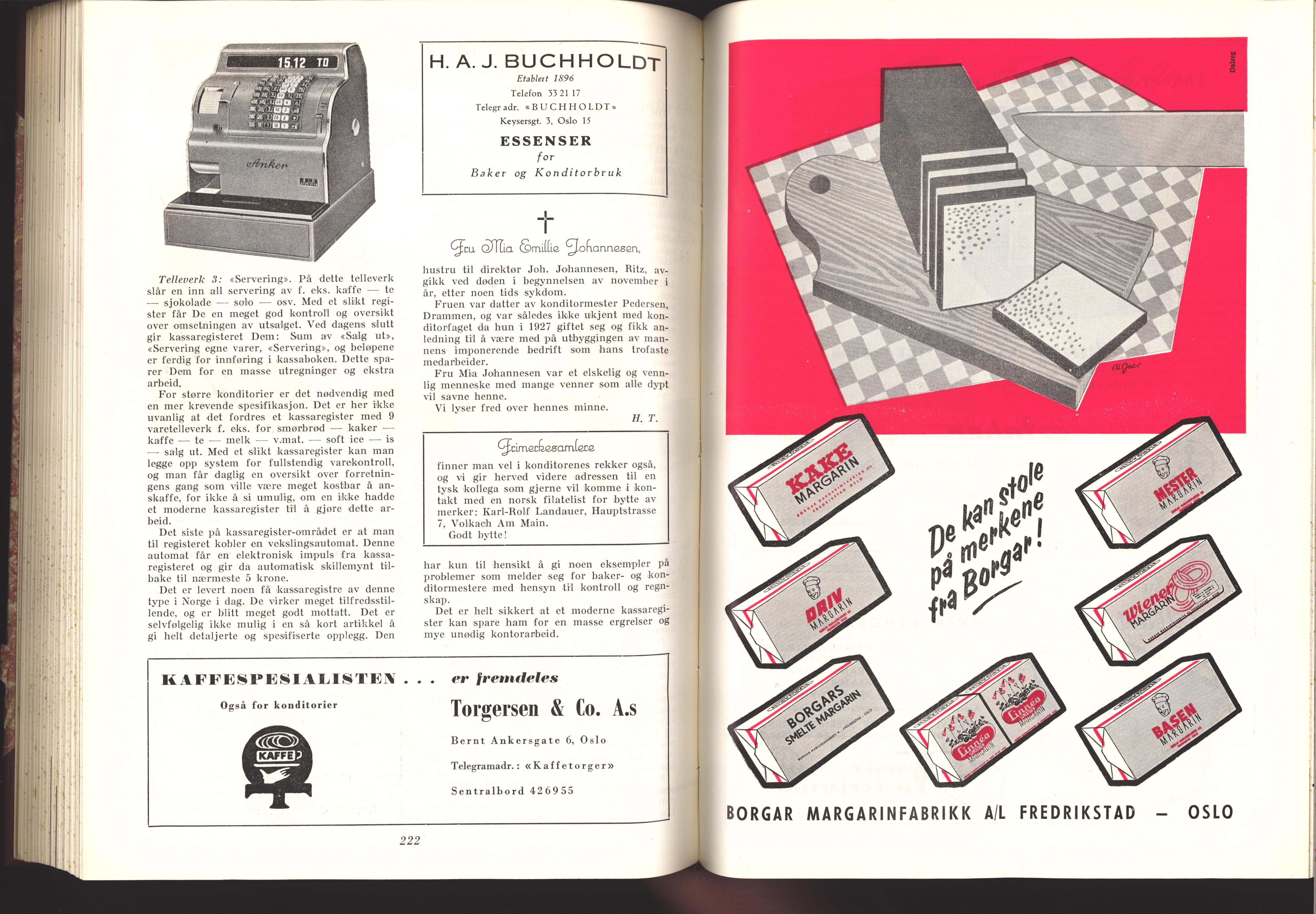 For stsrre konditorier er det nodvendig med en mer krevende spesirfikasjon. Det er her i'khe uvanlig at ,det fordres et kassaregister med 9 varetelleverk f. eks. for srnsrrbrodkaker - kaffetemelkv.mat.soft iceissalg ut. Med et slikt ,ka's'saregister kan rnan Iegge op'p system for fullstendig varekontroll, og man fAr daglig en oversikt over forretningens gan,g som ville viere meget ko,stbar fl anskaffe, for ikke A sri u,mulig, om en i,kike hadde et mo,derne kassaregister t'iLl 6r gjore'dette arbeid.