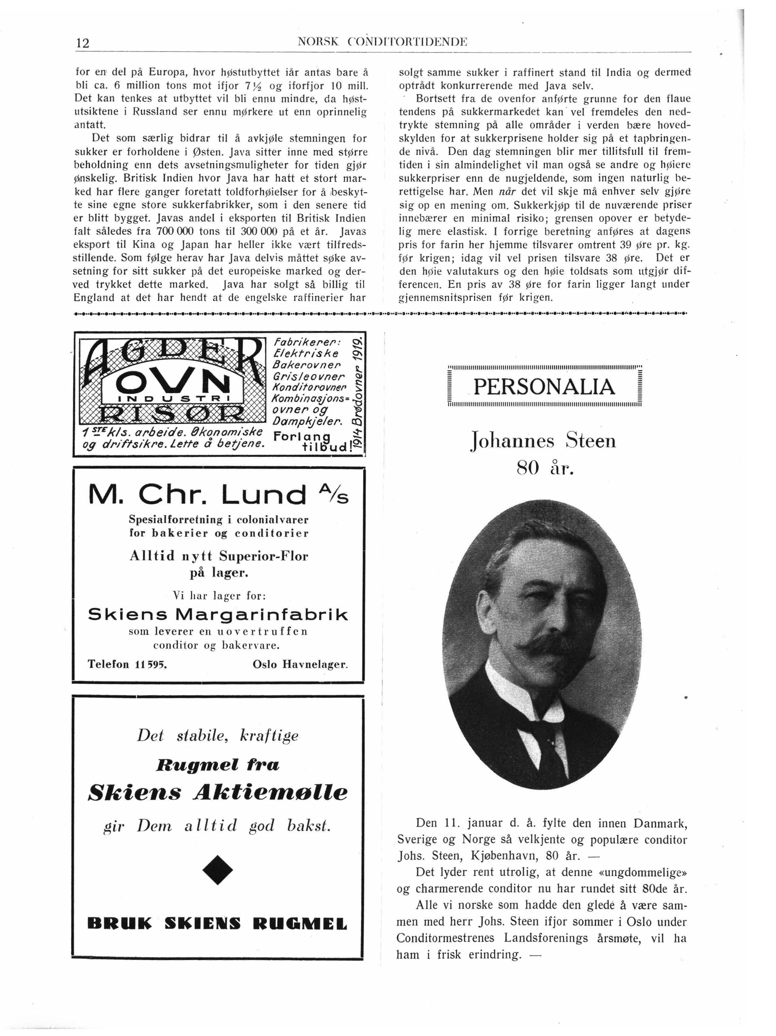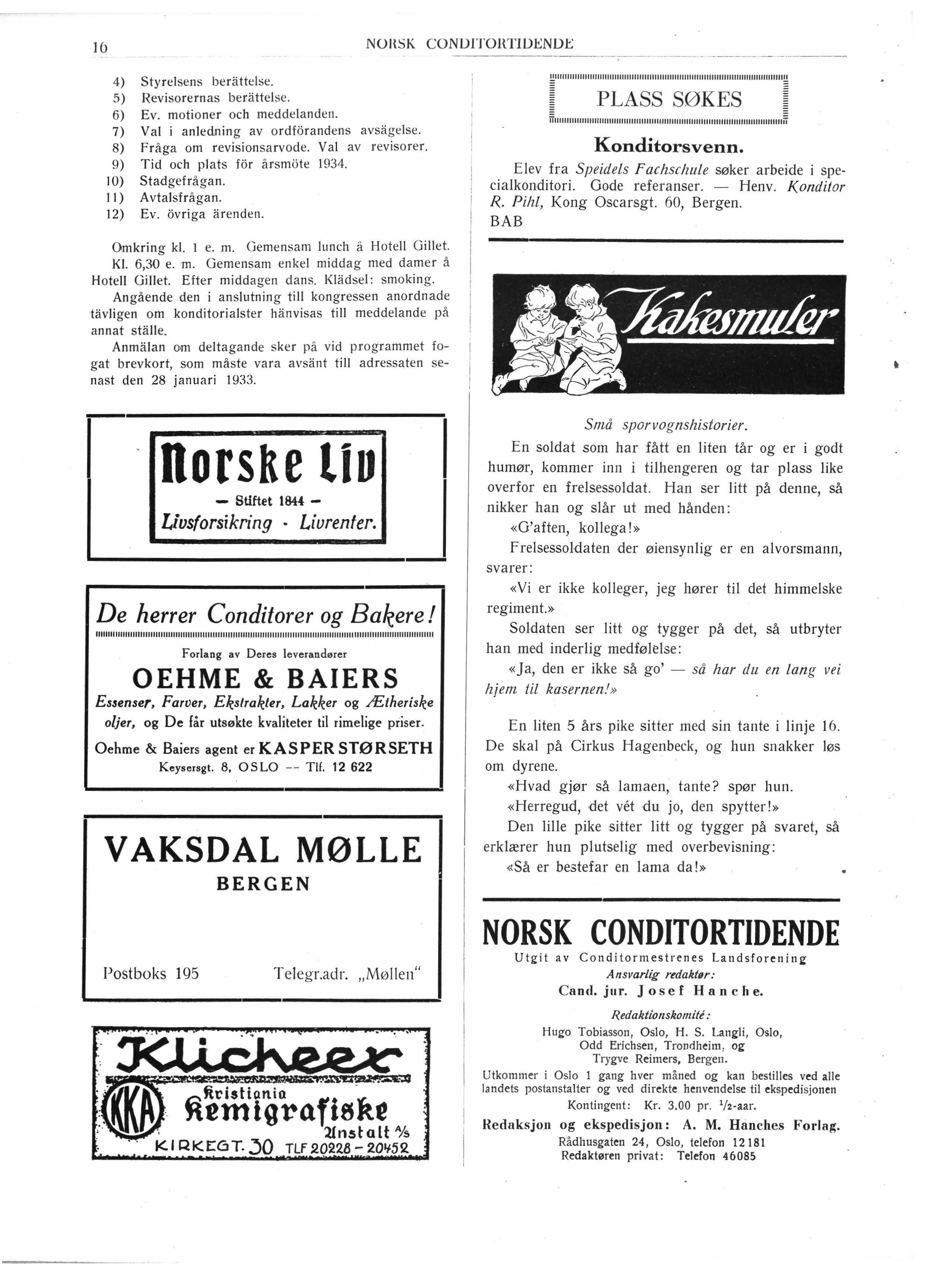 Utgi! av Conditormestrenes Landsforening Ansvarlig redaktør: Cand. jur. Josef Hanche.