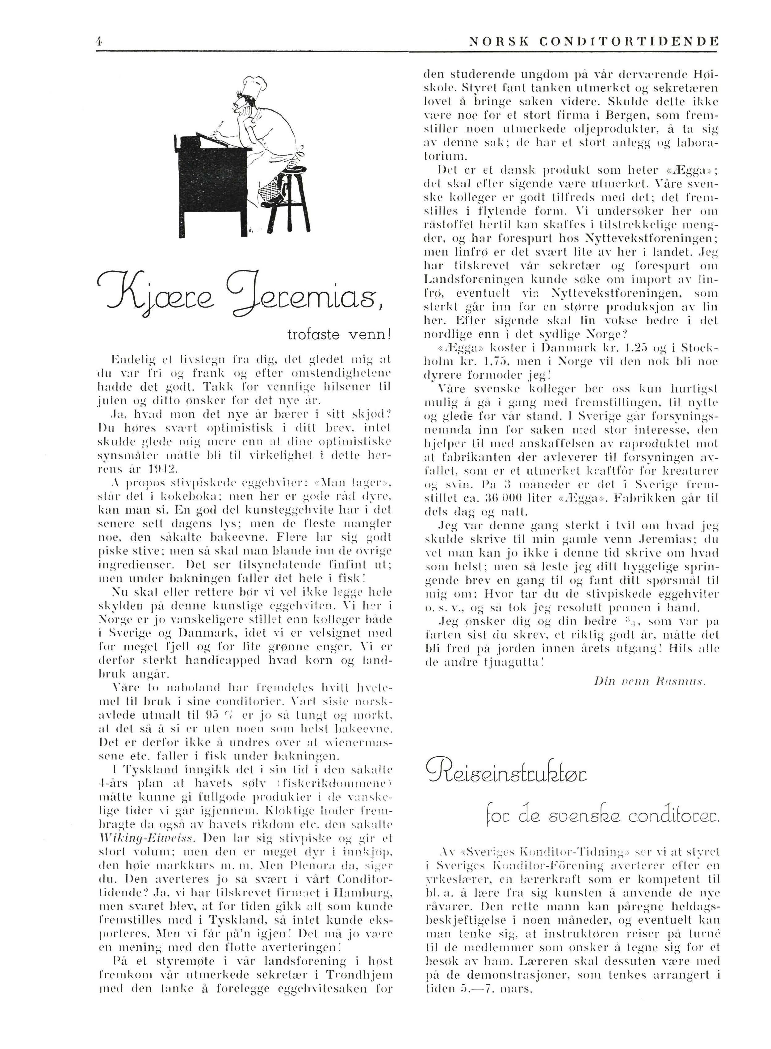 Det e r ikk e s å s Y:l' r t o ft e bl a d e t f a r skriftlig e hils e ner fra l e s e rne Co ndit o r e ne lid e r n e mlig ab so lutt ikk e aY s kri w kl 9e D es t o h ygge li gere er d e t n å r Yi e n e nk e lt gan g f å r d e t , og n å r hil se n e n er .l e dsag e t a\' et bidra g til bl a d e ts innh o ld , e r d e t g ansk e ow rnrd e ntli g kj ,t• rk o 111111 e nl. D e lt e g j e ld e r d e n jul e - o g nytt.h shil se n e n Yi 111 o tt o k fra «-' e n n, el ps e udonym so111 Yi har hatt den g led e .°1 s e t d par g an ge r i nhe spalt e r i å r e ts l!> p <<' em ,> skriY e r s å go dt at d e t ikk e skuld e , ·,n e n f> <h' e ndig å skjui e sig bak ps e udon y mets
