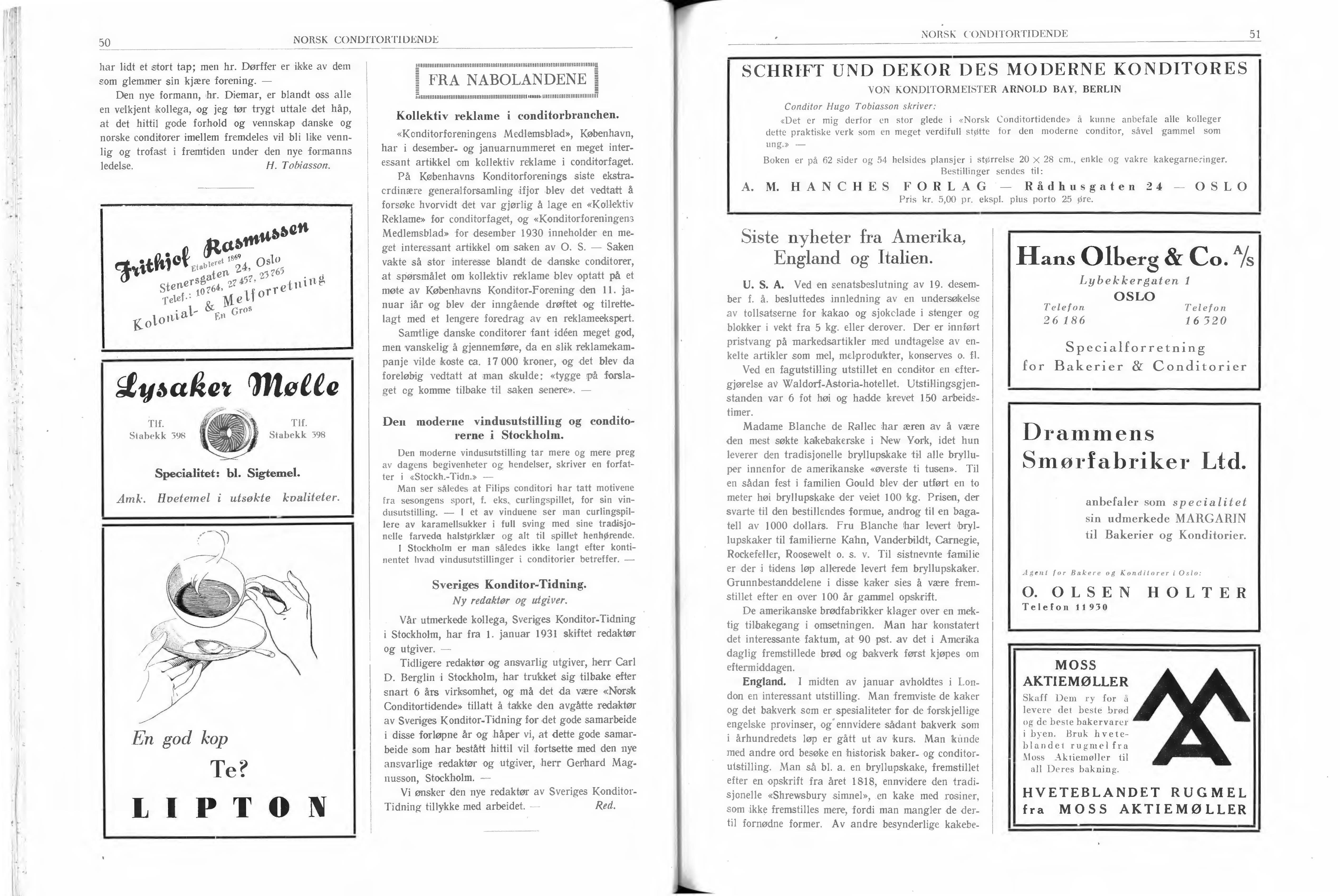 Vår utmerkede kollega, Sveriges Konditor-Tidning i Stockholm, har fra 1. januar 1931 skiftet rndaktør og utgiver. -