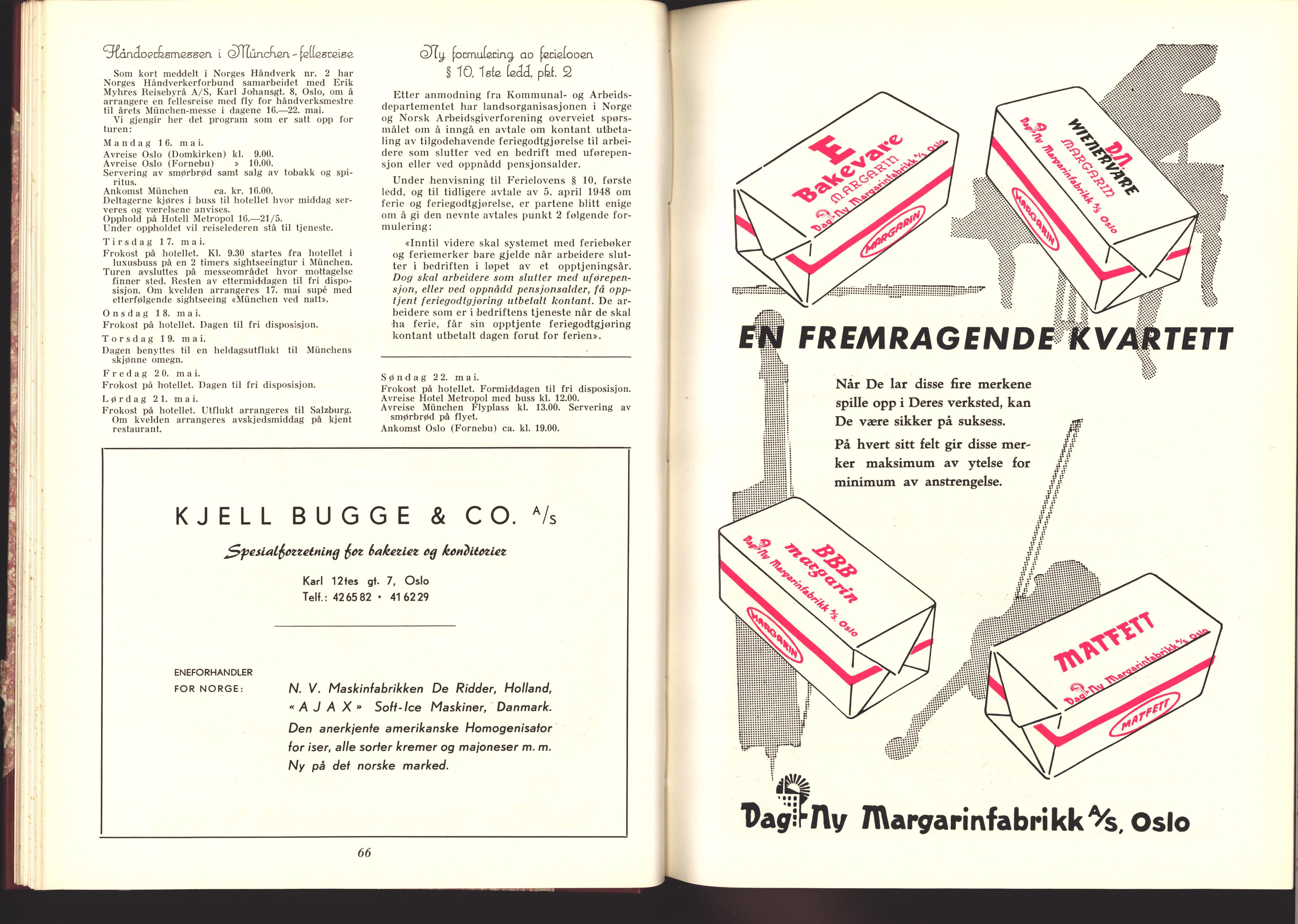 Og sfl gikk det slag i slag. I dag omfatter firmaet 80 forskjellige utsalg og over 1200 ansatte, hvorav vel halvparten er beskjeftiget med selve fremstillingen av produktene. I 1955 var firmaets nettooverskudd nrermere 2 millioner kroner, i 1956 dlaye 2 millioner kroner og i 1957 vel 2,5 millioner kroner. I dag ligger fortjenesten pfl n&rmere 2 millioner D-mark i 6ret, eller droye 3 millioner norske kroner.