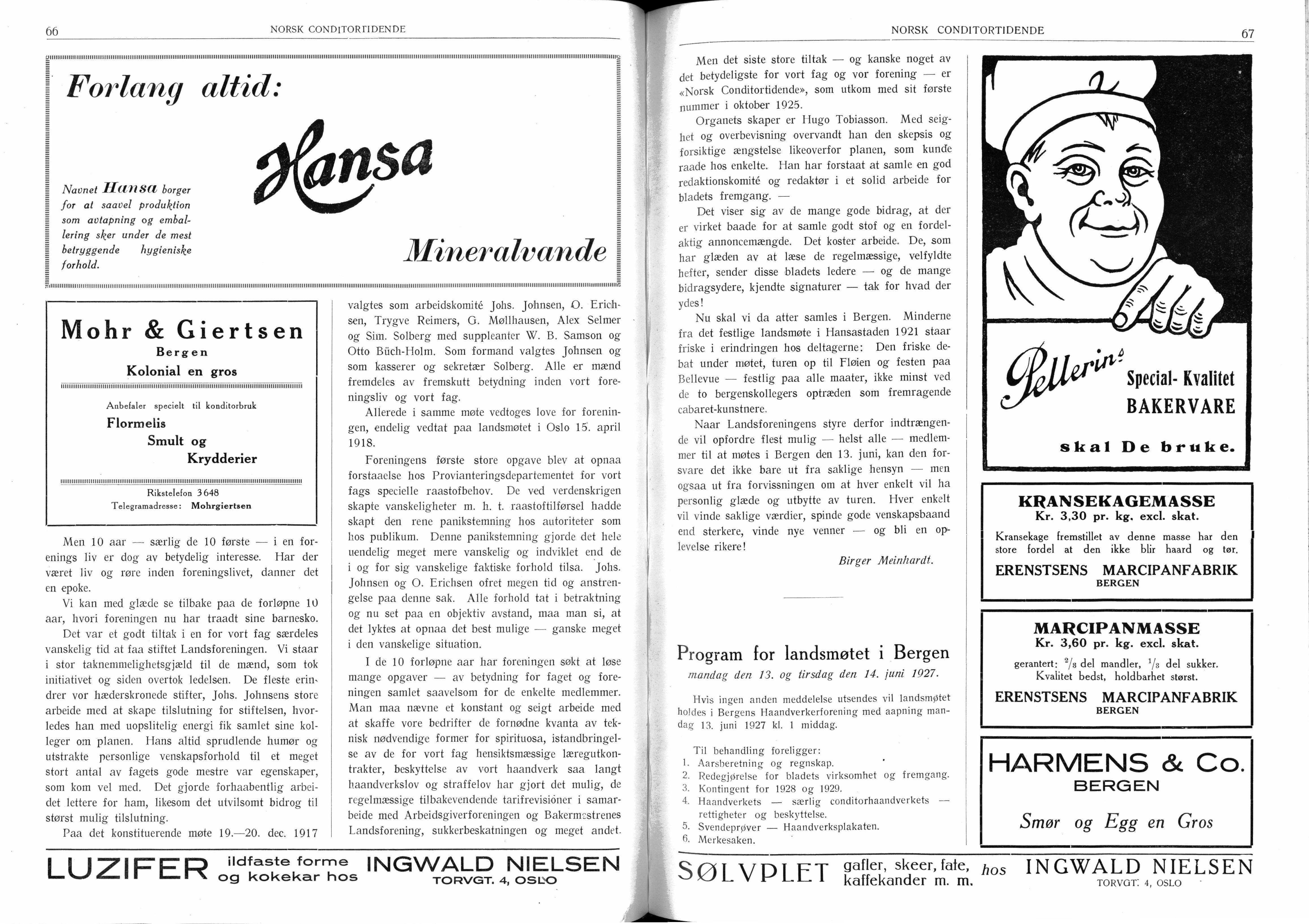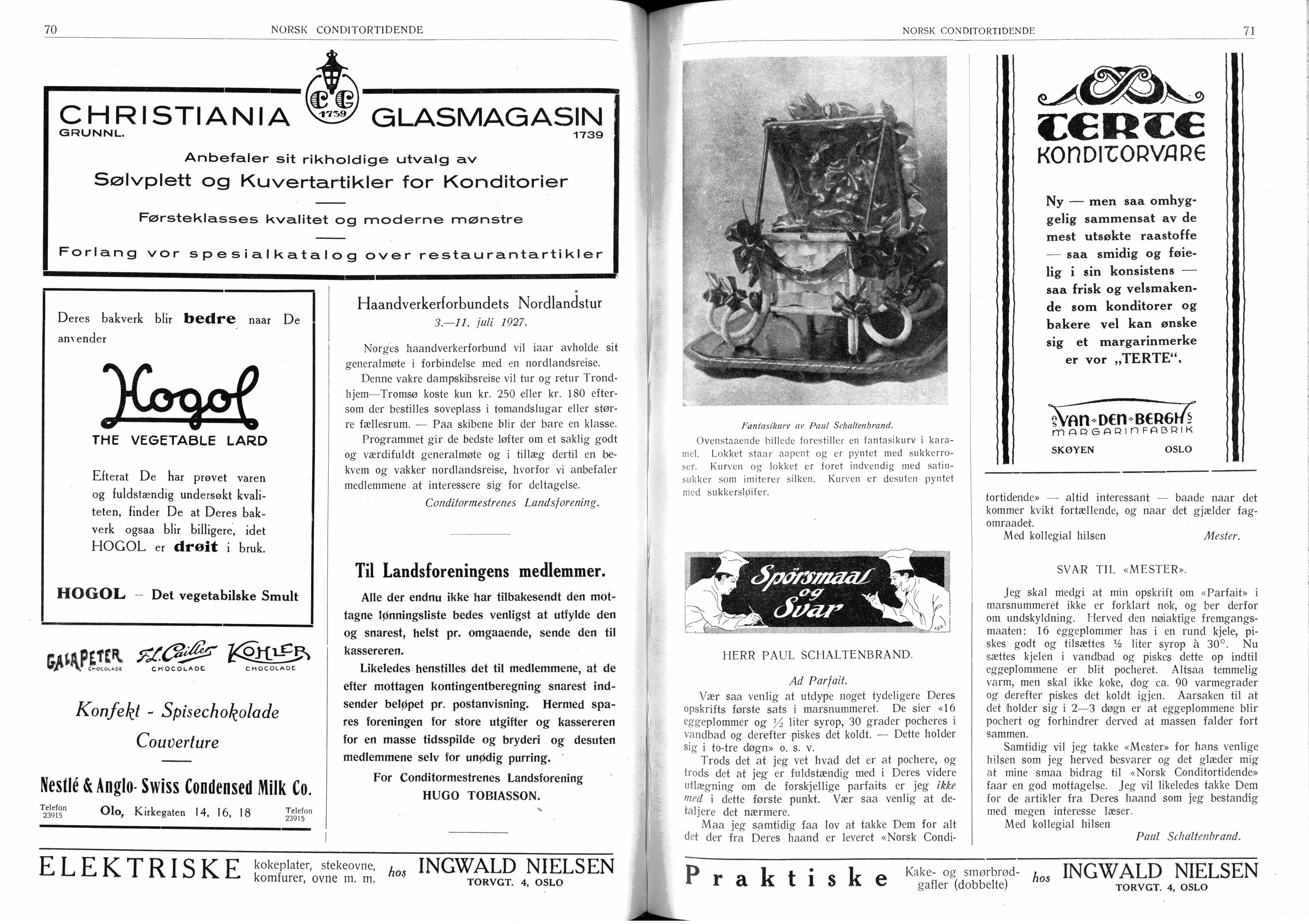 Men det siste store tiltakog kanske noget av det betydeligste for vort lag og vor foreninger <Norsk Conditortidende>>, som utkom med sit forste flurnmer i oktober 1925.