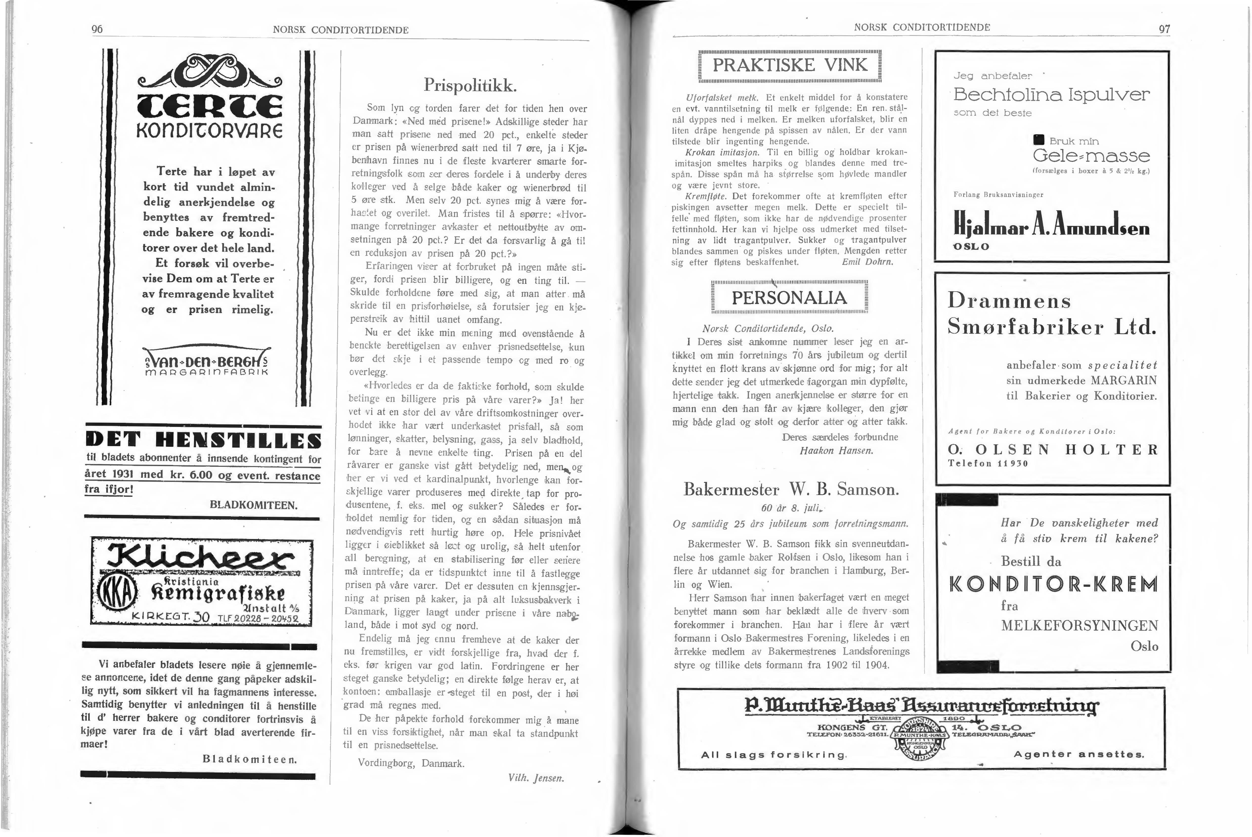 Utgit av C:onditormestrenes Landsforening Ansvarlig redaktør: Cand. jur. J o se f H a n e h e. Redaktionskomite: Hugo Tobiasson, Oslo, H. S. Langli, Oslo, Odd Erichsen, Trondheim, og Trygve Reimers, Bergen.