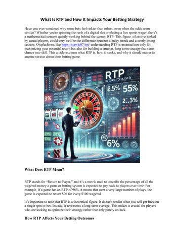 Have you ever wondered why some bets feel riskier than others, even when the odds seem similar? Whether you're spinning the reels of a digital slot or placing a live sports wager, there's a mathematical concept quietly working behind the scenes: RTP. This figure, often overlooked by casual players, could very well be the difference between a lucky streak and a costly losing session. On platforms like https://stawki07.bet/ understanding RTP is essential not only for maximizing your potential return but also for building a smarter, long-term strategy that turns chance into skill. This article explores what RTP is, how it works, and why it should matter to anyone serious about their betting game.