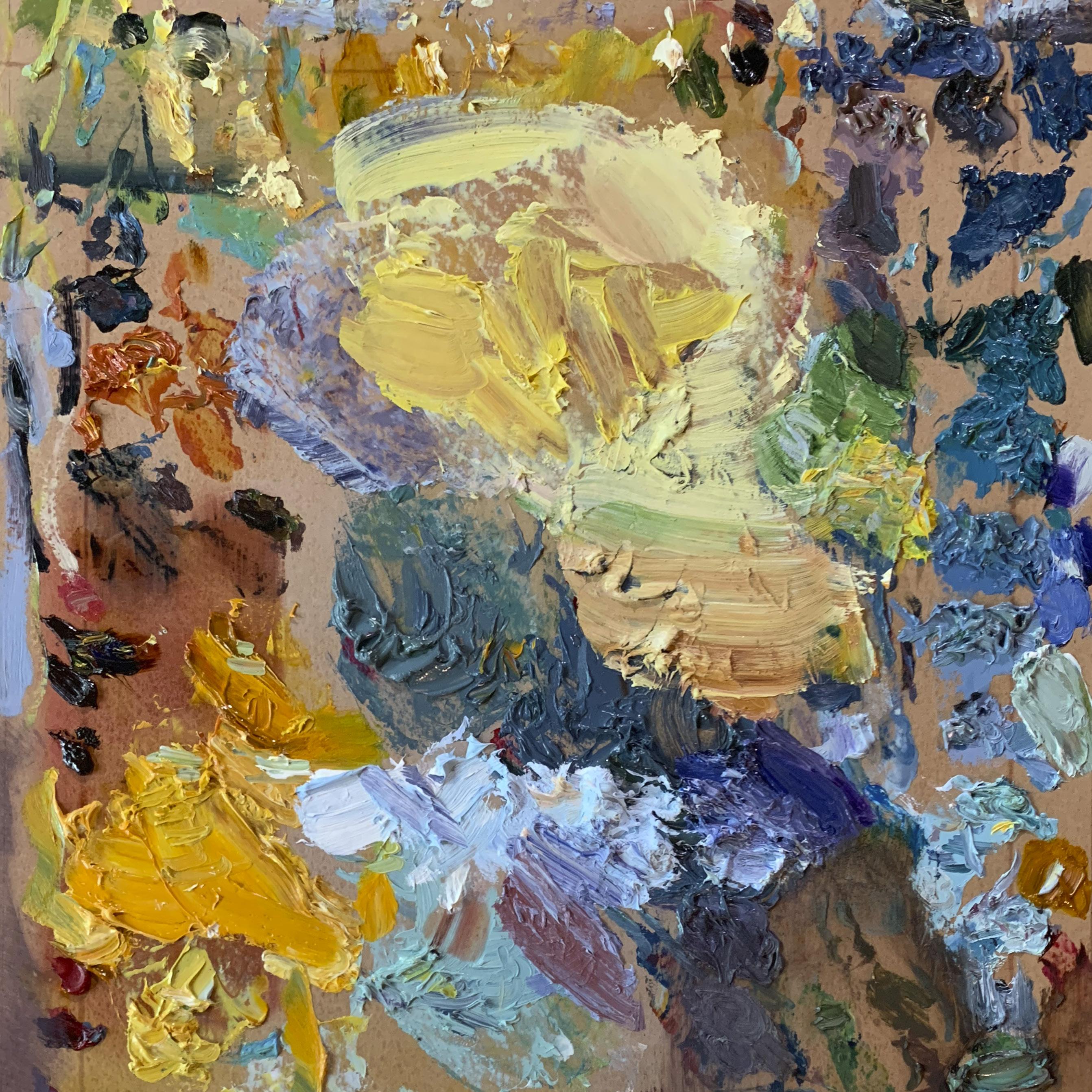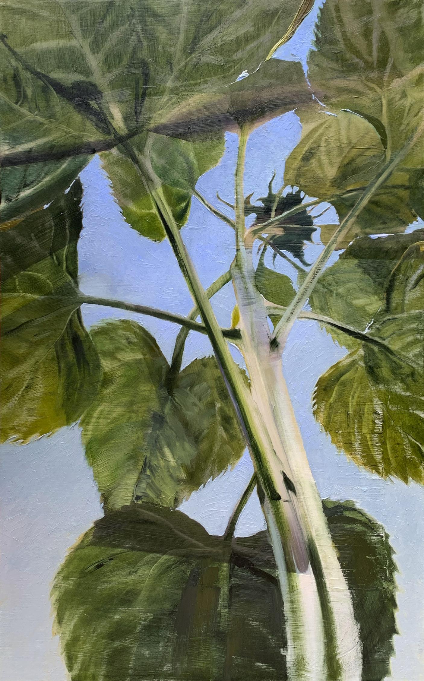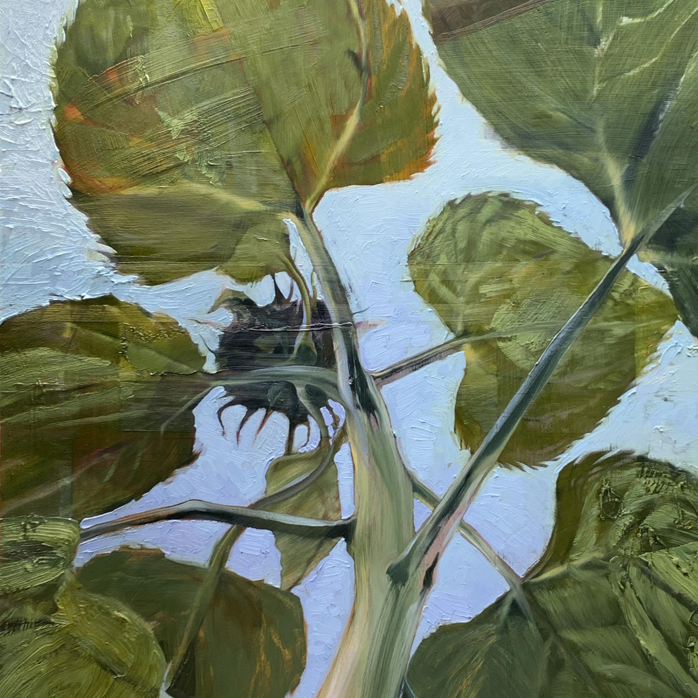 While making Sunflower Seeds, Heck looked to artists from the past who had painted with Oil on paper and also painted sunflowers. She considered the way numbers and math can be hidden in structures, how brushstrokes add meaning to composition, and how both positive and negative space affect the arrangement of a picture.