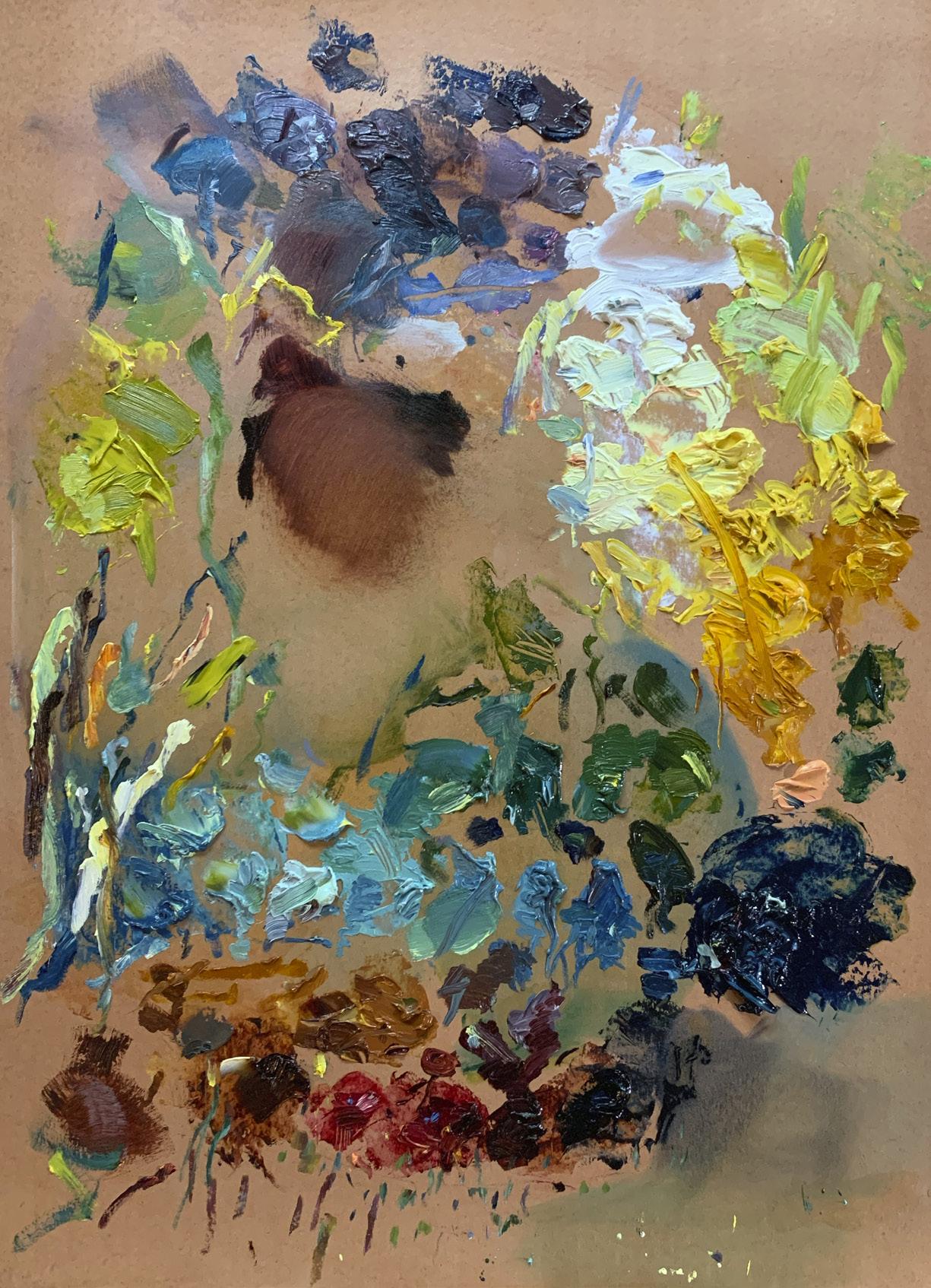 Oil on paper mounted on panel 13.5 x 21.5 inches