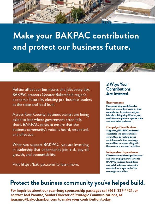 “Since 1999, Chamber members and fellow business leaders have relied greatly on the BAKPAC to stay singularly focused on supporting and helping to elect candidates who will support business in the Greater Bakersfield area,” she said. “We aren’t partisan and have been dogged in our desire to focus on that one mission.”
