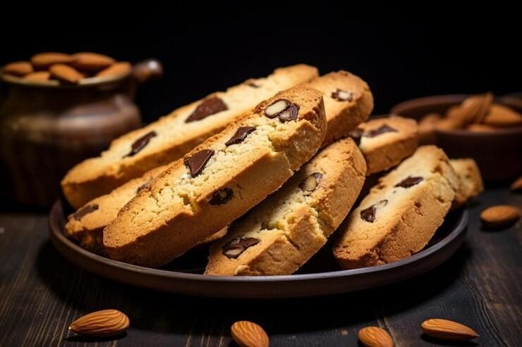 Cantucci, or biscotti, are crunchy almond cookies that are twice-baked to achieve their distinctive dryness. They are typically enjoyed dipped in Vin Santo (a sweet Italian dessert wine).