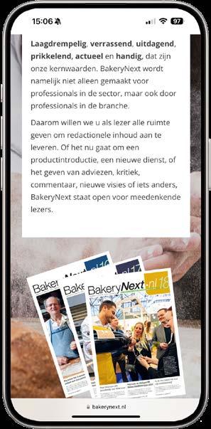 Bakery Next, de vakkrant voor bakkend Nederland. Een unieke bladformule voor en door professionals uit de bakkerijbranche. Verschijnt 18 x per jaar.