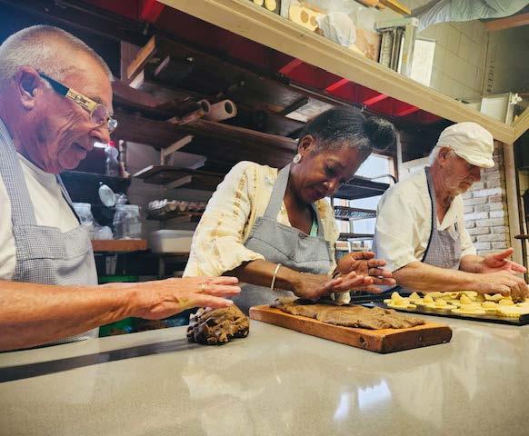 vol bedrijf. Iedereen kan er zelf de handen uit de mouwen steken en ervaren hoeveel inzet, vakkennis en ervaring het vergt om een gevulde koek te maken, een krentenmik te bakken of zorgvuldig een heerlijke bonbon samen te stellen.