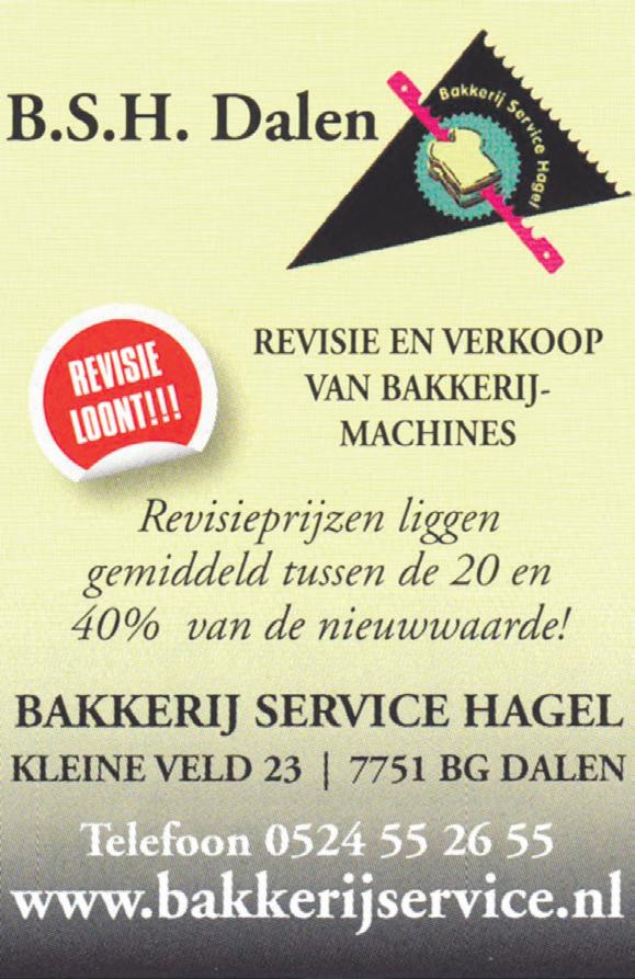 B & O Bakkerijtechniek B.V. Tel: 0165-316341 www.benobakkerijtechniek.nl BSH Dalen Tel: 0524-552655 www.bakkerijservice.nl