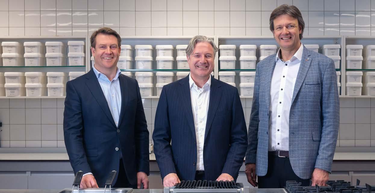 Een belangrijk onderdeel van het programma waren de vertrouwde snijmachines, waaronder de horizontale- en broodjessnijmachines. Ook de nieuwste ultrasone-snijma chines werden uitgebreid getest; de toepassingsmogelijkheden hiervan bleken indrukwekkend. Daarnaast was er veel aandacht voor spuitma chines en strooiapparatuur. Demon straties met onder meer diepvriesfruit, kersen uit blik, kruimelmassa’s en notenmengsels lieten zien hoe nauwkeurig en gelijkmatig deze kunnen worden gedoseerd.