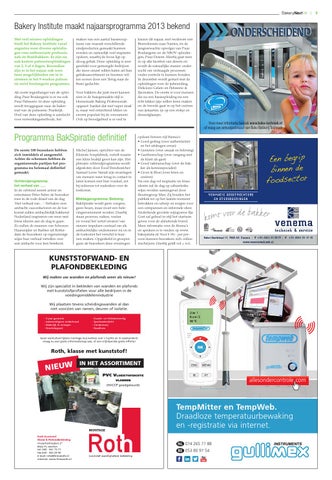 E E N B E G R I P ofBvraag I Nuw verkoopadviseur N E N DvanEBeko Bakkerij F O Techniek ODSECTOR! opdoen binnen vijf thema’s: • Goed gedrag (over authenticiteit en het uitdragen ervan) • Genieten (over smaak en beleving) • Gastheerschap (over omgang met de klant als gast) • Goed vakmanschap (over de bakker als kennisspecialist) • Groei & Bloei (over leren en creëren) Na een dag vol inspiratie en frisse ideeën zal de dag op cabareteske wijze worden samengevat door theatergroep Mier. Zij houden het publiek tot op het laatste moment betrokken en scherp en zorgen voor een ontspannen en informele sfeer. Nederlands grootste wijngoeroe Ilja Gort zal geheel in stijl het startsein geven voor de afsluitende borrel. Meer informatie over de thema’s en sprekers is te vinden op www. bakspiratie.nl. Voor € 99,- per persoon kunnen bezoekers zich online inschrijven. Hierbij geldt vol = vol.