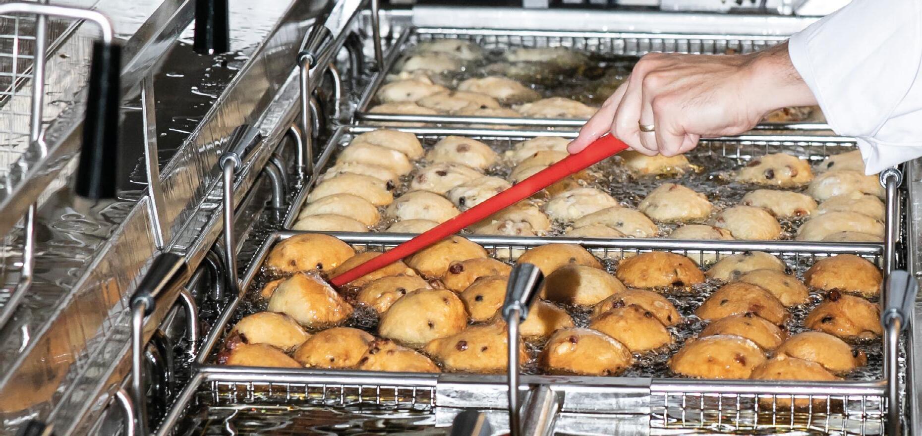 Vertrouwde kwaliteit oliebollenbakapparaten van Beko Techniek in vier types: BO100, BO200, BO300 en BO400. Standaard in RVS, diverse capaciteiten, olieaftapkraan aan onderzijde, elektronisch instelbare temperatuurregeling, verrijdbaar uitgevoerd, met zij- of achteruitlektafel. Uit te breiden met mandendoorschuifsysteem, -uitneemsysteem, -retour, dompelrekken en diverse werkbladen. Uitstekend te combineren met doseermachine.