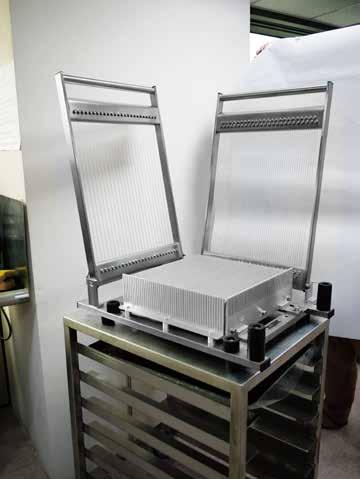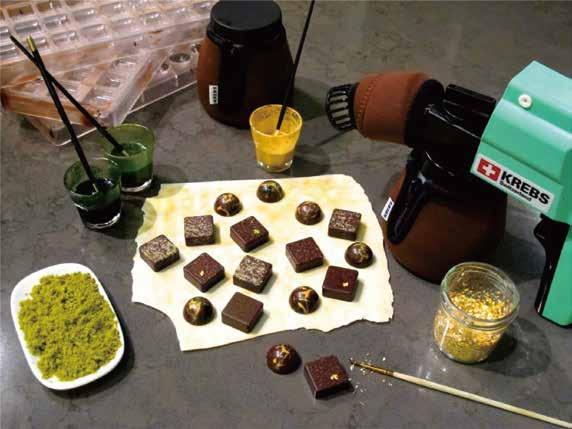 K01.巧克力戳章、棒棒糖紙棒、定厚條 K02.鏟刀刮刀、巧克力叉、膠片 K03.巧克力脆米模、多層次甘納許模 K04.專業巧克力模 K05.巧克力裝飾羽毛刀、割線板 K08.巧克力披覆機 K09.溶鍋、冷卻工作板、定量充填機 K11.專業巧克力切割器 K12.巧克力均質機、T5調溫機