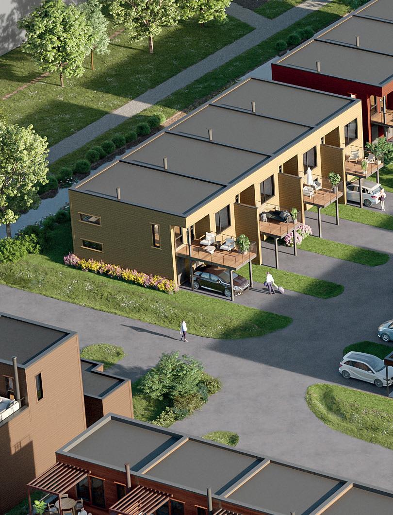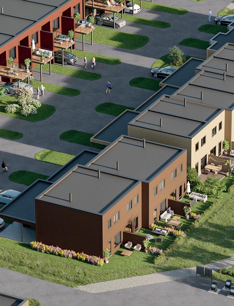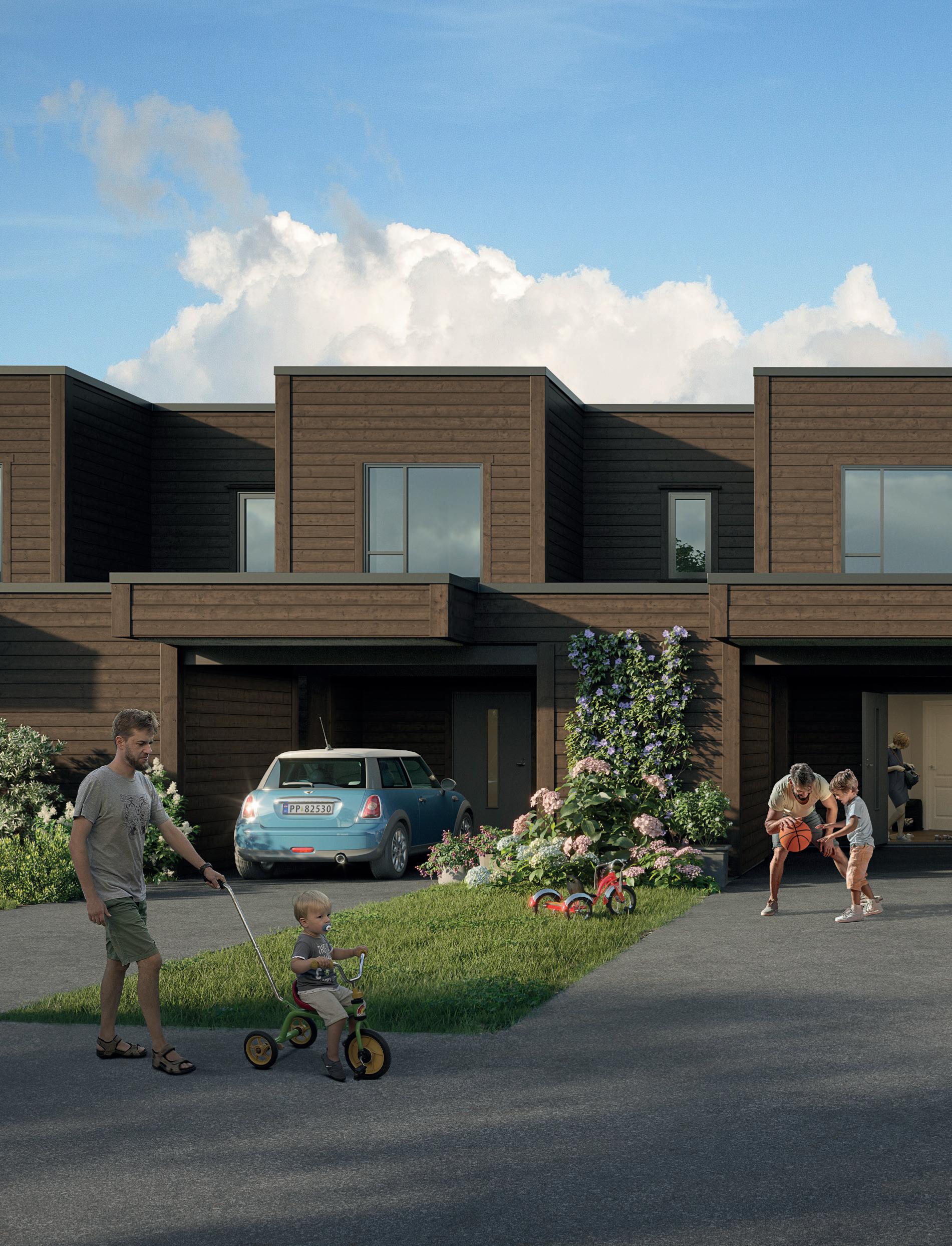 Kjedet eneboliger i rekke med carporter REGULERINGSMESSIG STATUS