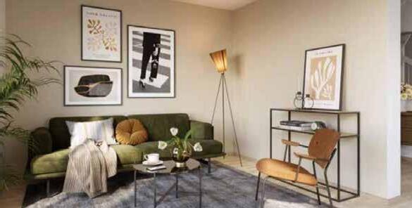 Alle illustrasjoner, skisser, møblerte plantegninger m.m. er kun ment å danne et inntrykk av den ferdige bebyggelsen, og kan således ikke anses som endelig leveranse. Inntegnet utstyr/inventar medfølger ikke, så som f.eks. hvitevarer og møbler utover det som er beskrevet i leveransebeskrivelsen, og det vil derfor fremkomme elementer i presentasjonsmaterialet som ikke inngår i leveransen.