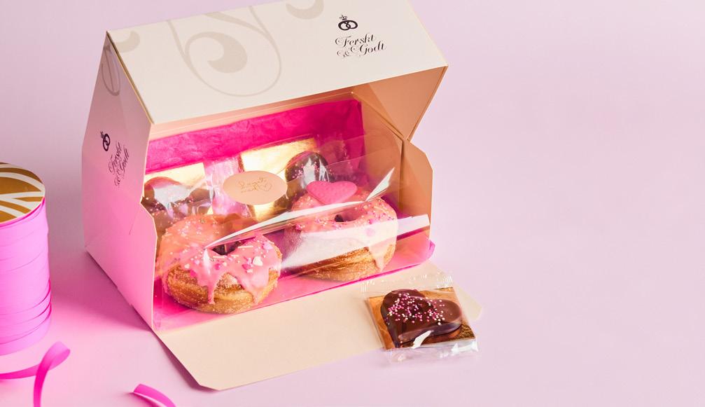 Lag gaveesker med bakverk og marsipanhjerter. Pakk pent inn i silkepapir med gavebånd og hverdagslykkeetikett i pastell – den perfekte kjærlighetsgaven å dele!