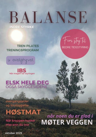 Balanse er ikke å gjøre alt perfekt, men å skape rom for energi, glede og indre ro – slik at du kan stå stødig i deg selv, uansett hva livet bringer. Alt starter på innsiden. Når du tar deg tid til å lytte innover, skape kontakt med ditt innerste selv og åpne opp for din indre kraft, vil det også skinne utover – i relasjoner, valg og livsglede. Dette magasinet er en invitasjon til å utforske nettopp det – hvordan du kan hente fram styrken, tryggheten og roen som allerede finnes i deg.