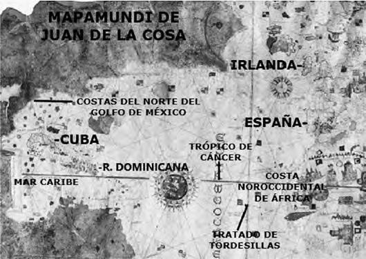 Colón, sin saberlo, descubre América, pero sus viajes supusieron un enorme impulso a la cartografía, ejemplo señero seria, por ejemplo, la famosa carta con las costas del Caribe de 1500 del