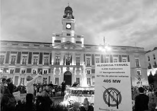 El dia 8 de octubre se celebro en Alcorisa una concurrida charla para informar, entre otras cosas, del proyecto de renovables planteado en nuestro termino municipal por la empresa portuguesa EdP con 17 aerogeneradores y 527 ha. de placas solares que suponen la instalación de 405 MW de potencia. En la charla también se animó a los asistentes a la participación en la manifestación del día 16 en Madrid, convocada a nivel estatal por ALIENTE (Alianza Energía y Territorio), plataforma de más de 180 asociaciones de todo el territorio nacional, sobre todo de la España vaciada como la nuestra. 8.000 personas gritamos al unísono en la Puerta del Sol “Renovables SI pero así NO”. De la provincia de Teruel salieron 6 autobuses, en Alcorisa subimos 30 personas.