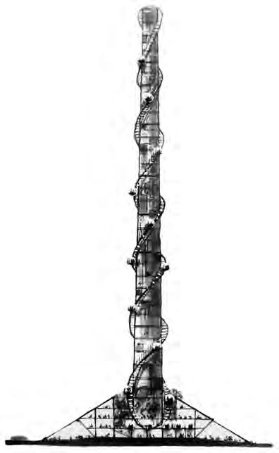 Según se recoge en el documento primigenio, las cápsulas panorámicas se deslizarían por el perímetro de la chimenea mediante unas sirgas con rieles