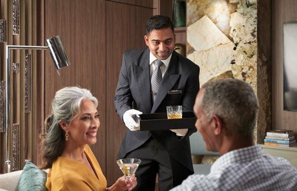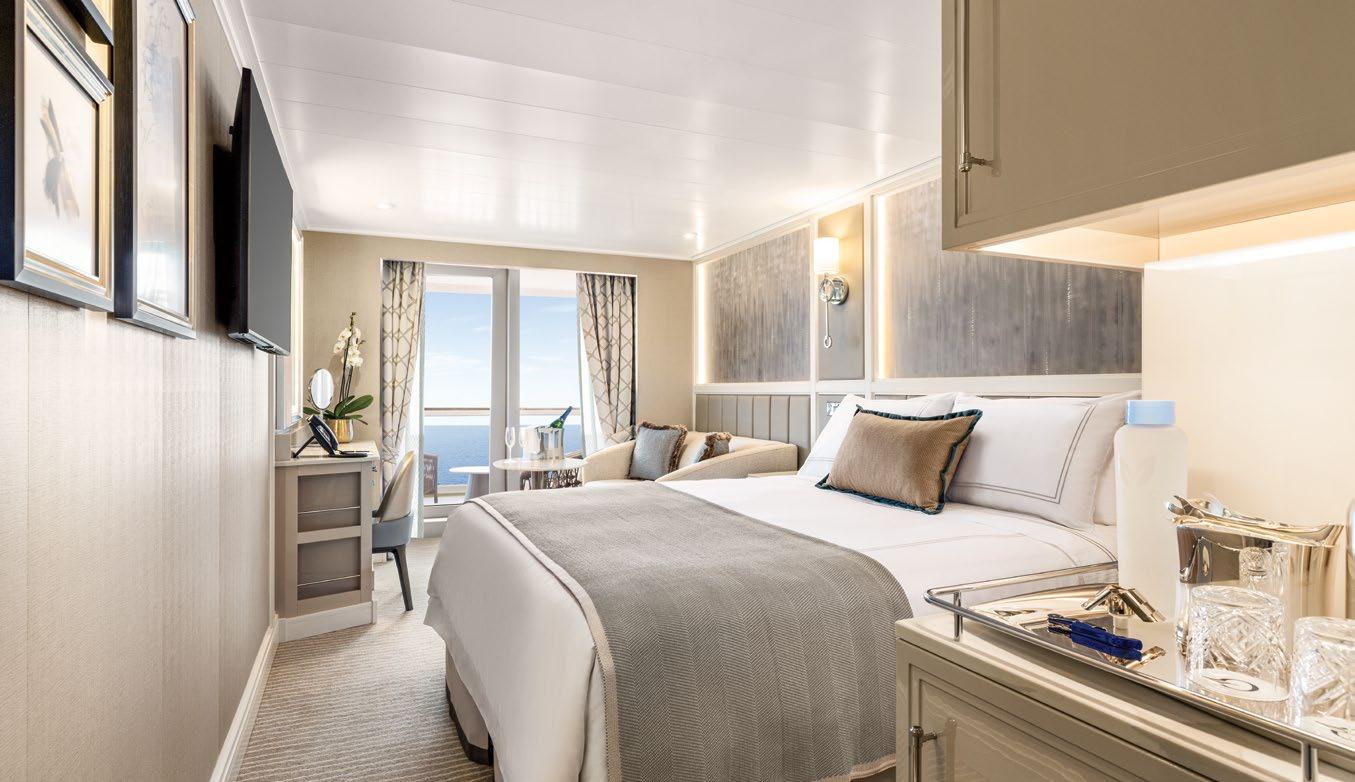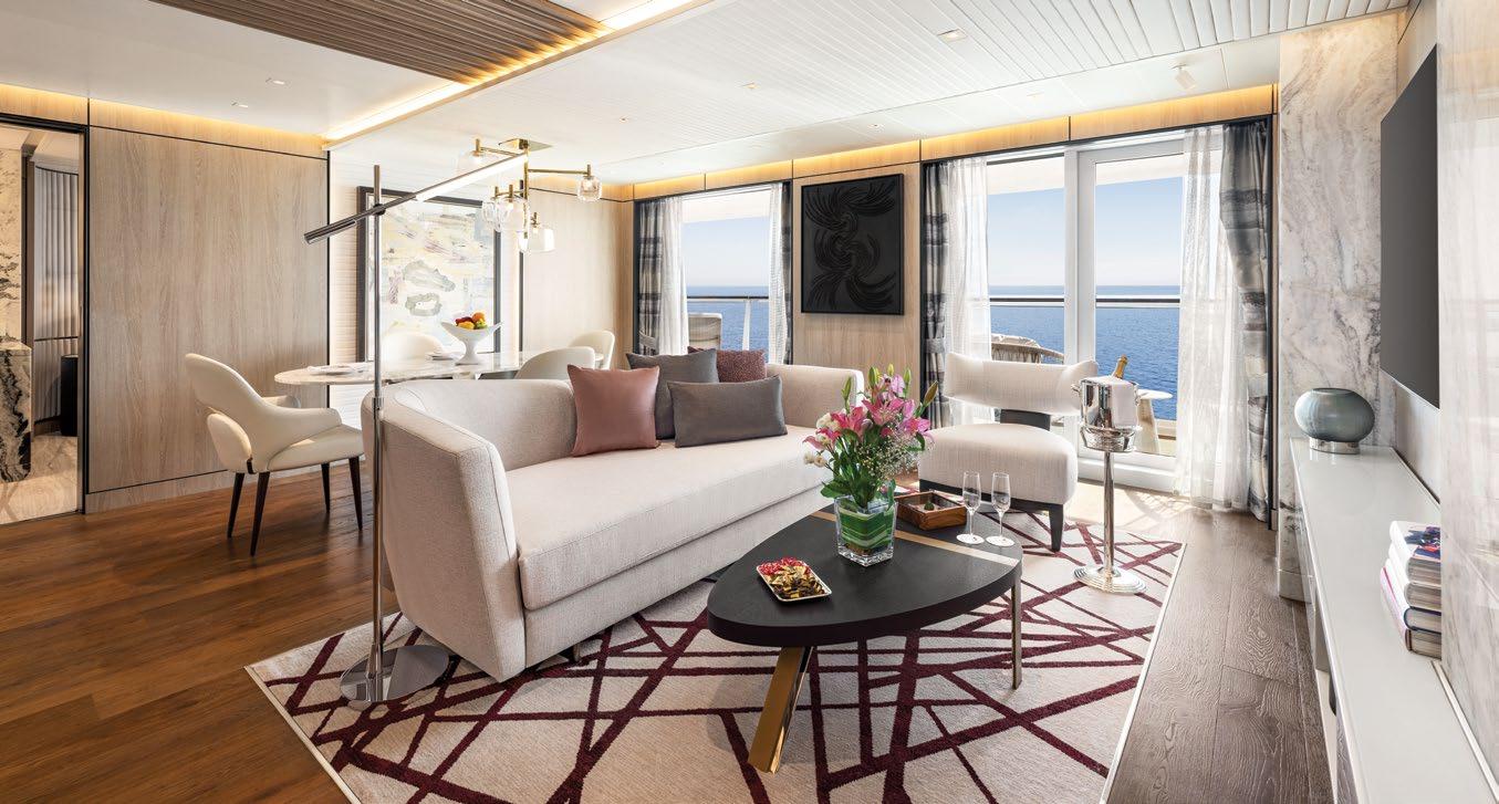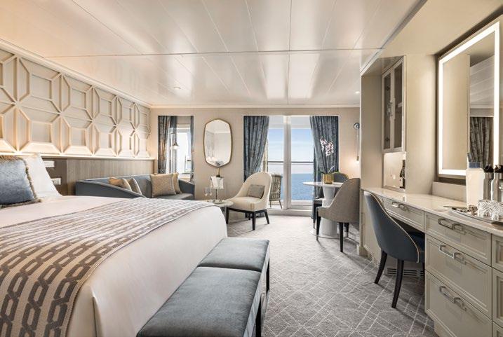 At approximately 2,400 square feet,+ each Owner’s Suite spans the full beam of the ship and showcases sweeping walls of glass and expansive verandas that celebrate the seaside views. Luxurious fabrics and furnishings create the ultimate home at sea with a grand foyer, elegant dining room, stylish living area and a spacious master bedroom with a plush king-size bed and spa-calibre bathroom. Butler service and exclusive card-only access to the private Executive Lounge further elevate the experience.