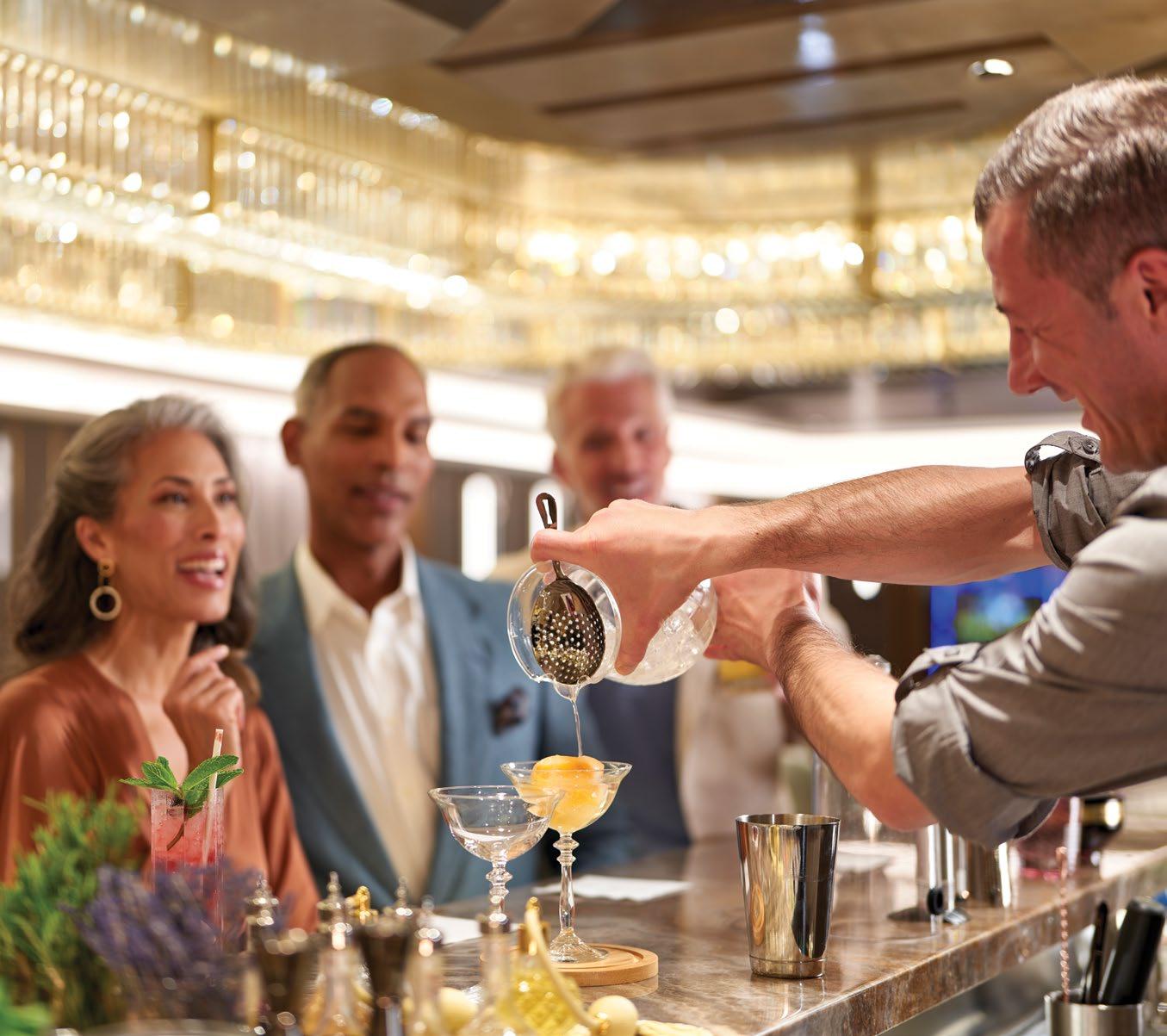 Oceania Cruises not only serves The Finest Cuisine at Sea® but also has a mixology series to match that invites you to discover new, exciting cocktails and immersive mixology experiences throughout the ship. The latest cocktail-crafting trends and techniques have inspired an array of drink offerings such as cocktails topped by flavoured vapour bubbles, Negronis aged in wooden barrels, delightfully entertaining rum mixology experiences, experiential speciality beverage carts such as The Ultimate Bloody Mary Bar and more. A bountiful cellar of low- and no-sugar wines as well as flavourful and refreshing zero-proof cocktails are also on hand. Enjoying a drink aboard Vista is an experience unto itself – from the beauty of watching a skilled bartender smoke an Old Fashioned to the tableside preparation of a Manhattan.