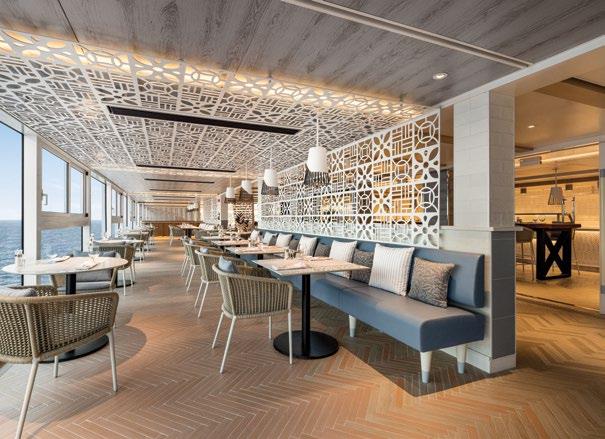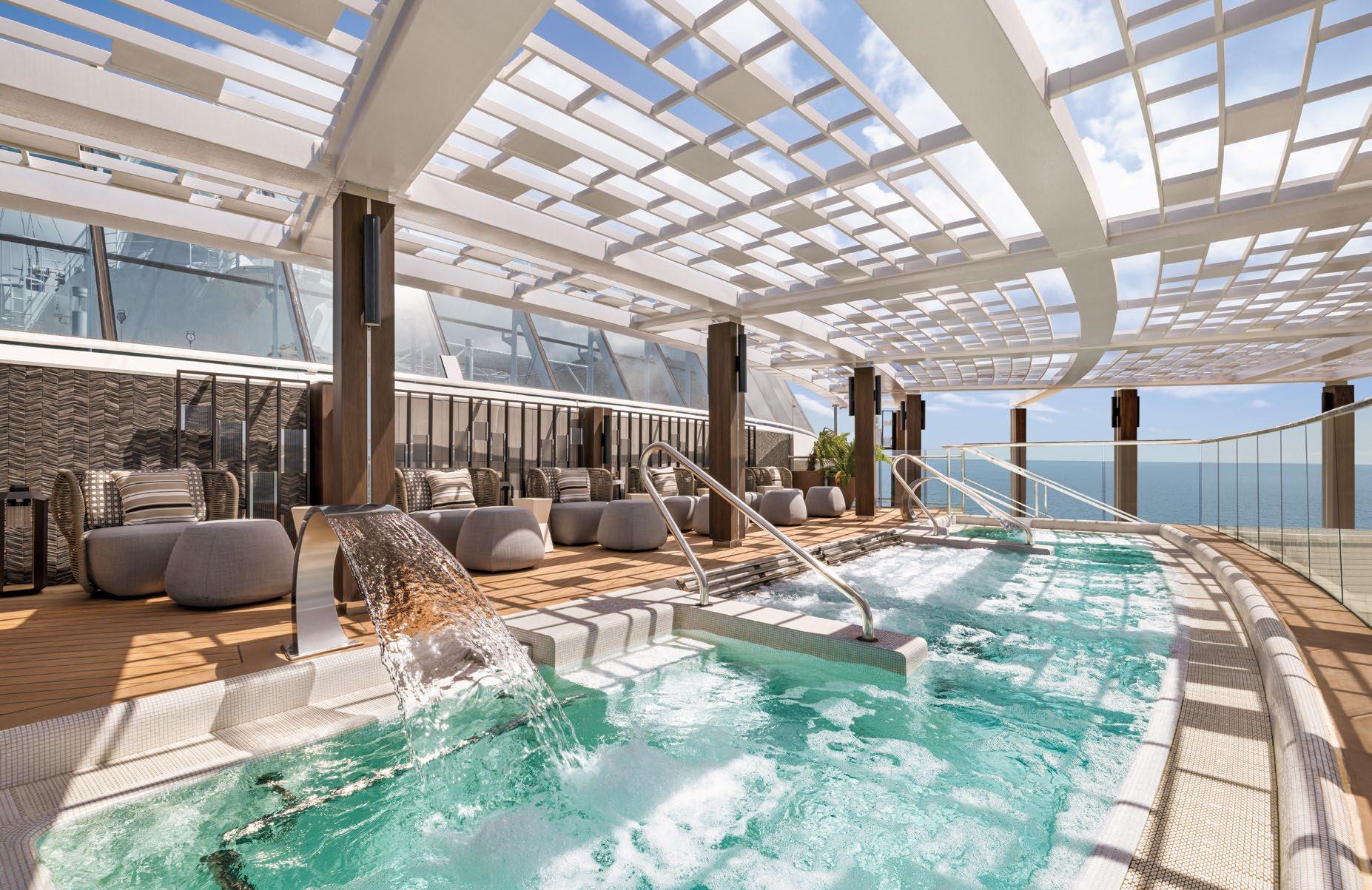 Vista’s Pool Deck mirrors the beauty of the surrounding sea. Taking its cue from natural environments that inspire tranquillity, the design of the Pool Deck brings together organic textures and calming tones to create an idyllic onboard escape. Relax in the luxury of a shaded cabana overlooking the serene scene or lounge on a daybed right at the water’s edge until you’re ready for a refreshing swim.