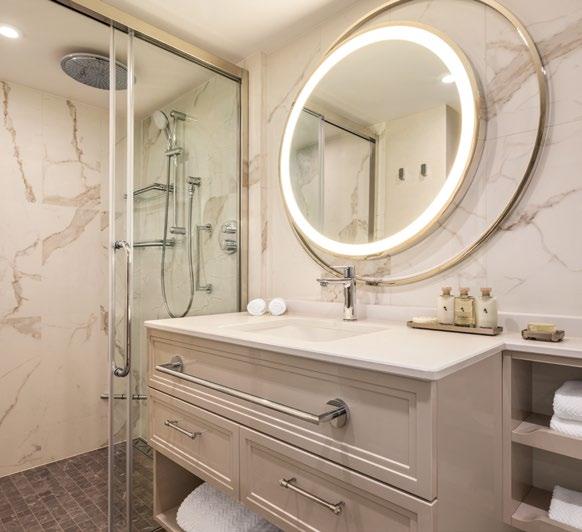 Vista elevates the standards for comfort and residential-style luxury with all-veranda accommodations and some of the most spacious suites and staterooms offered on an epic world journey. Suites and staterooms feature a beautifully appointed bathroom with an oversized rainforest shower, large vanity and copious storage space. Penthouse, Oceania, Vista and Owner’s Suites are ultra-spacious and true seagoing residences with an abundance of living and dining space for entertaining or simply relaxing. Vista also features a category of Concierge Level Veranda Staterooms dedicated to solo travellers. Bathed in soothing tones and detailed with multiple layers of luxurious furnishings, accents and artwork, Vista’s suites and staterooms offer the ultimate home away from home.