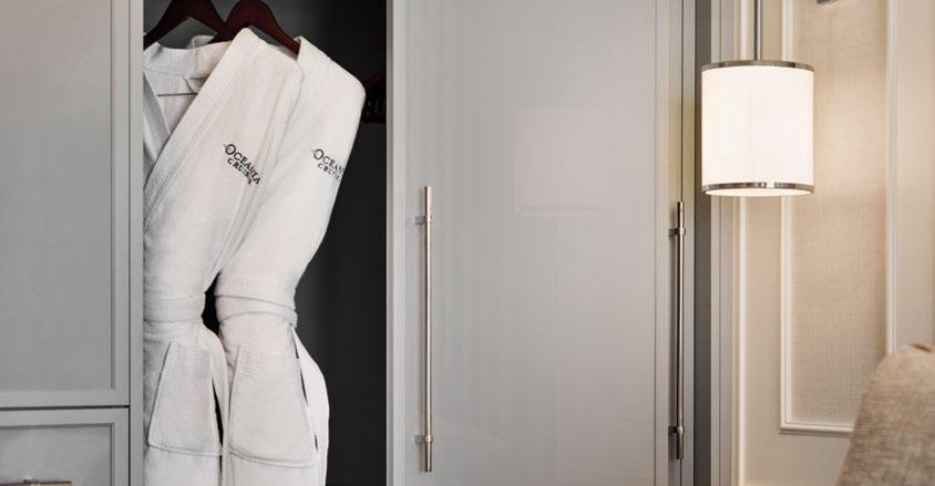 + King-size bed (cannot be converted into twin beds) for Owner’s, Vista and Oceania Suites and queen-size bed for all other suites and staterooms (Tranquility Bed available for purchase at OceaniaBedCollection.com)