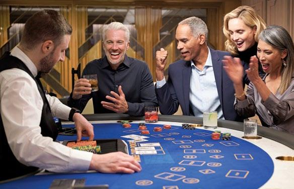 Unwind from a day ashore by playing your favourite games in our chic Monte Carlo-style casino. Choose from an exciting range of ways to play, from card and table games such as blackjack and roulette to slot machines. The staff is happy to provide lessons on how games are played, the rules and proper table procedures.