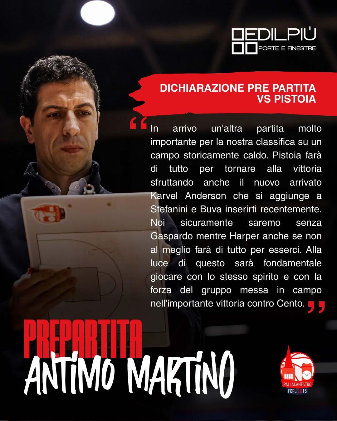 Ospiti giocatori e staff della Pallacanestro Forlì 2.015 disputarsi di mercoledì, nello slot del martedì verrà proposta la differita del match della domenica, mentre il venerdì sarà dedicato alla partita del mercoledì. La replica della gara contro Pistoia andrà in onda martedì 10 e venerdì 13 febbraio alle ore 17.00.