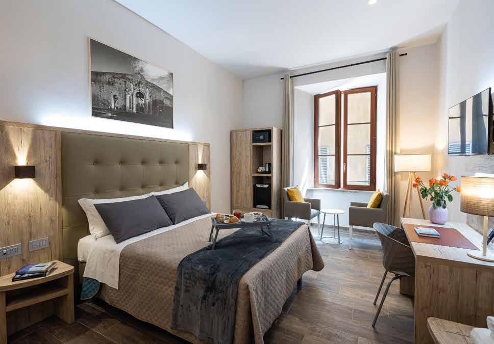 Sorridente, fisicamente esile quanto determinata e tenace, Paola ci racconta la sua visione di ospitalità: “Portiamo avanti il sogno di mio padre, con tanto desiderio di fare bene, di saper interpretare la sua visione di accoglienza, puntando su uno stile personalizzato che unisce la semplicità al fine living. Tutta la famiglia lavora nell’azienda, con me mio marito, mia sorella e i miei cognati e cognate, oltre alla mamma, ancora oggi attiva.”