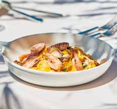 THE CHEF RECOMMENDS Tacos made with Romagna’s piadina, mussels and squacquerone cheese cream, Sardinian fregola risotto with seafood, tuna with red bread in five sauces.