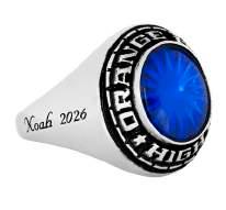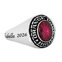 Stand apart from traditional designs with one of four elegant 10mm ring faces to display your high school. Then choose your stone color, metal and engraving for a look that’s both highly personalized and sentimental.